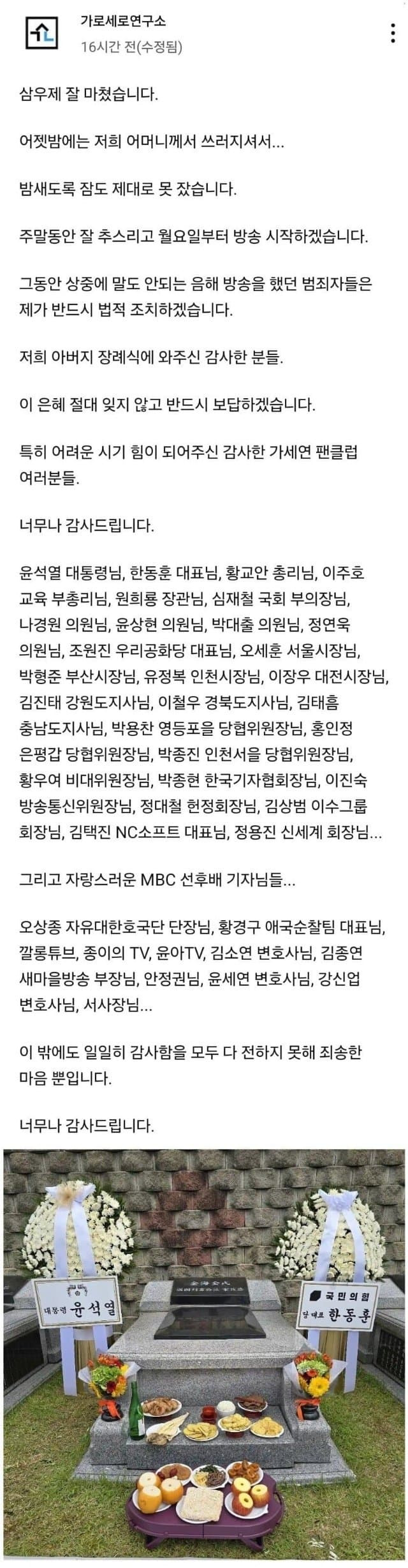[스크랩] [기타]가세연 김세의가 공개한 조문 명단 ㄷㄷ 작성자짱철맹|작성시간24.08.11|조회수9,863 목록 댓글 36 글자크기 작게가 글자크기 크게가 다음검색 스크랩 원문 : 樂soccer 현재 게시글 추가 기능 열기 북마크 공유하기 신고 센터로 신고 댓글 댓글 36 댓글쓰기 답글쓰기 댓글 리스트 작성자1번4번 | 작성시간 24.08.11 오 ~유정복 시발 존나 저런데 안빠지지?? 정용진 와~~~이마트시발 안간다 작성자쿨링파워 | 작성시간 24.08.12 처단 라인업 간추린 거 같네 작성자레냥이 | 작성시간 24.08.12 정용진 자기 이름 마지막이라 열받을듯 작성자지건임니다 | 작성시간 24.08.12 진짜로?;; 작성자헬로세경 | 작성시간 24.08.12 데스노트인줄 댓글 전체보기