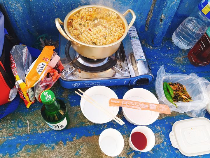 배에서먹는 라면쏘주