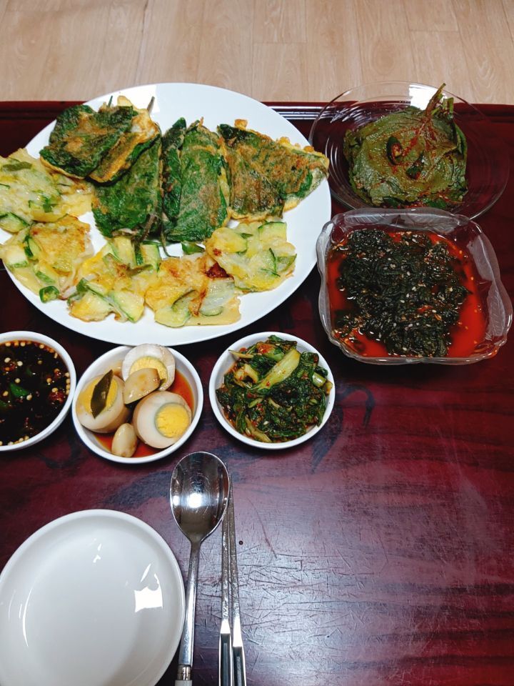 밭에서딴호박깻잎전 청각무침