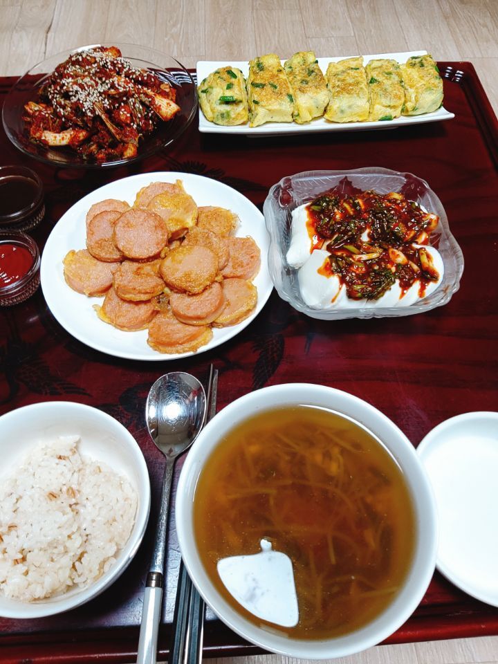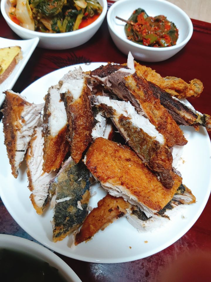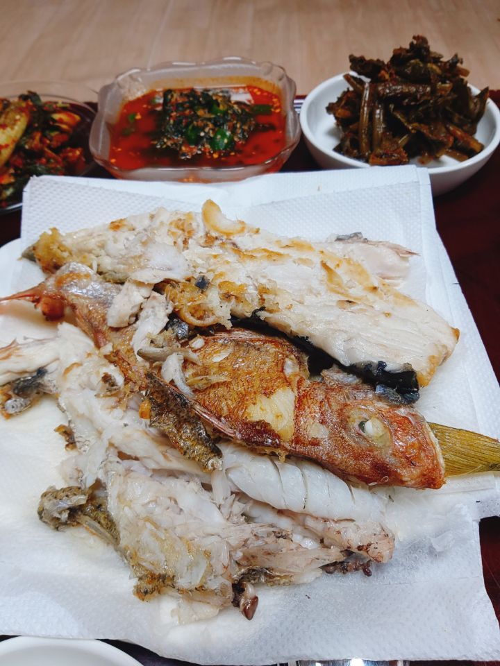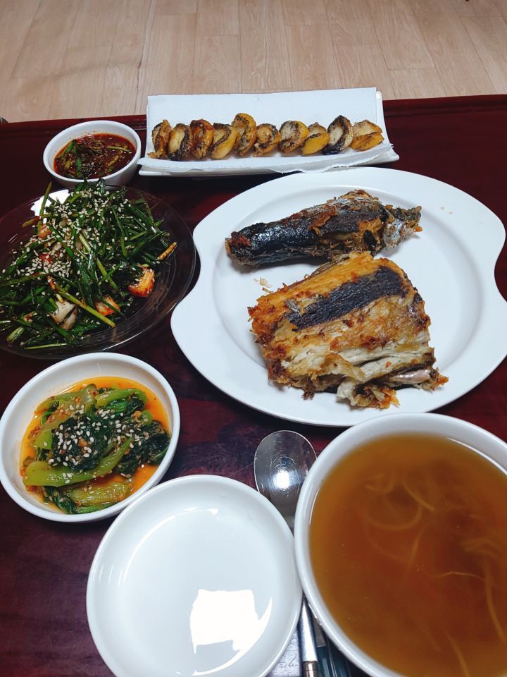 삼치구이얼갈이무침부추무침