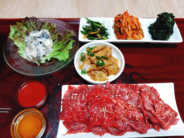 수육 겉절이 톳무침