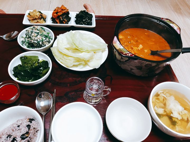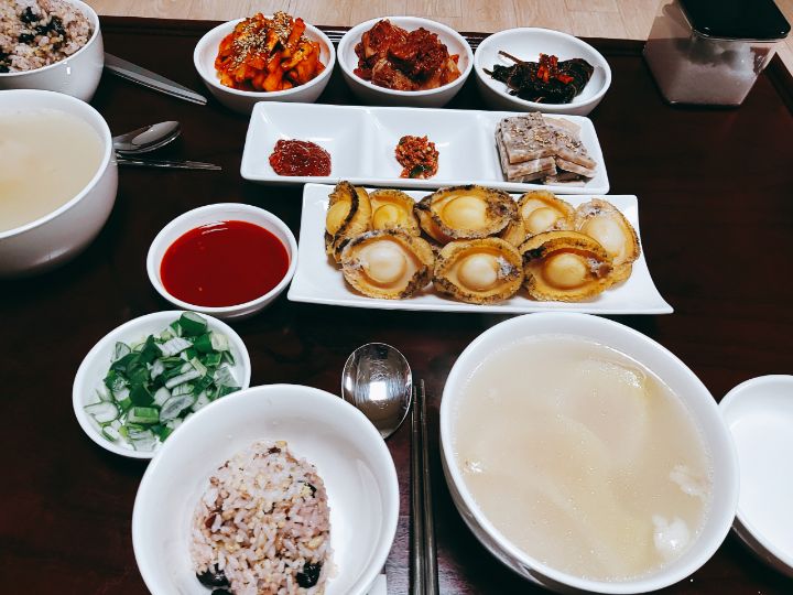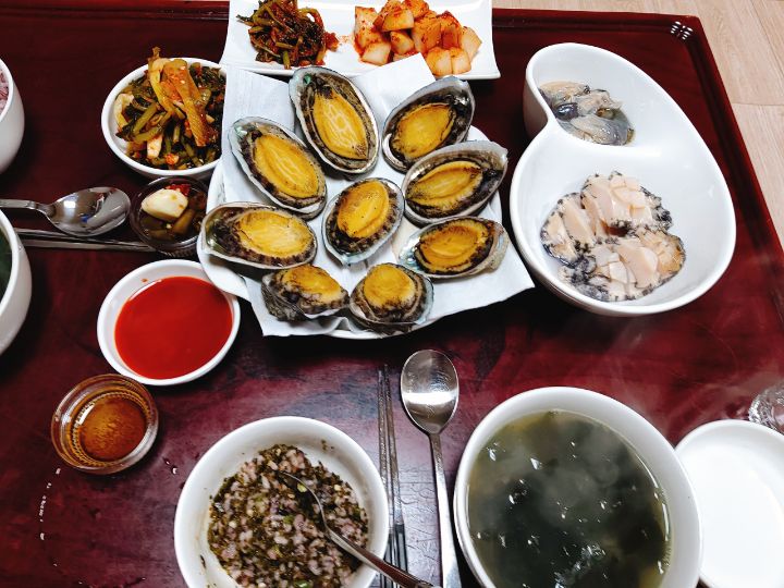 전복강된장에 양배추쌈 미역