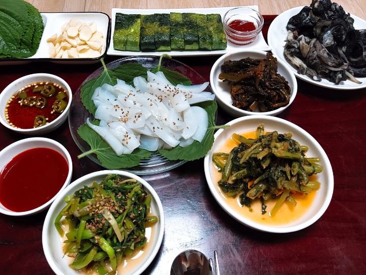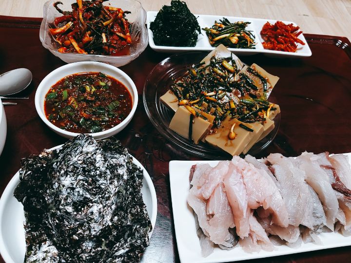 갑오징어회.찜 파래말이