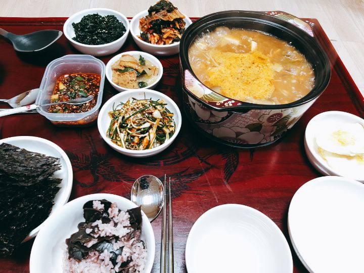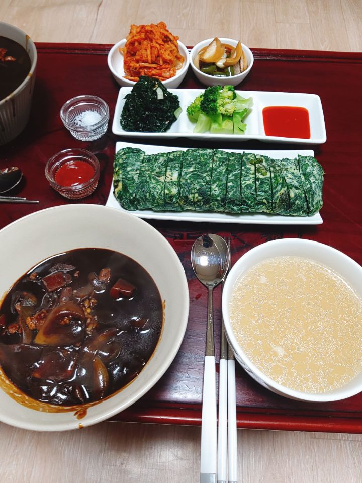 짜장밥 사골국 파래말이 양파장아찌