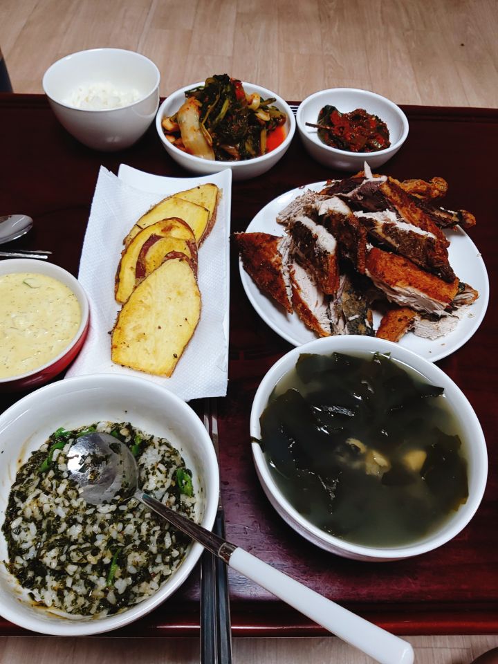 생선까스 다시마밥 전복미역국