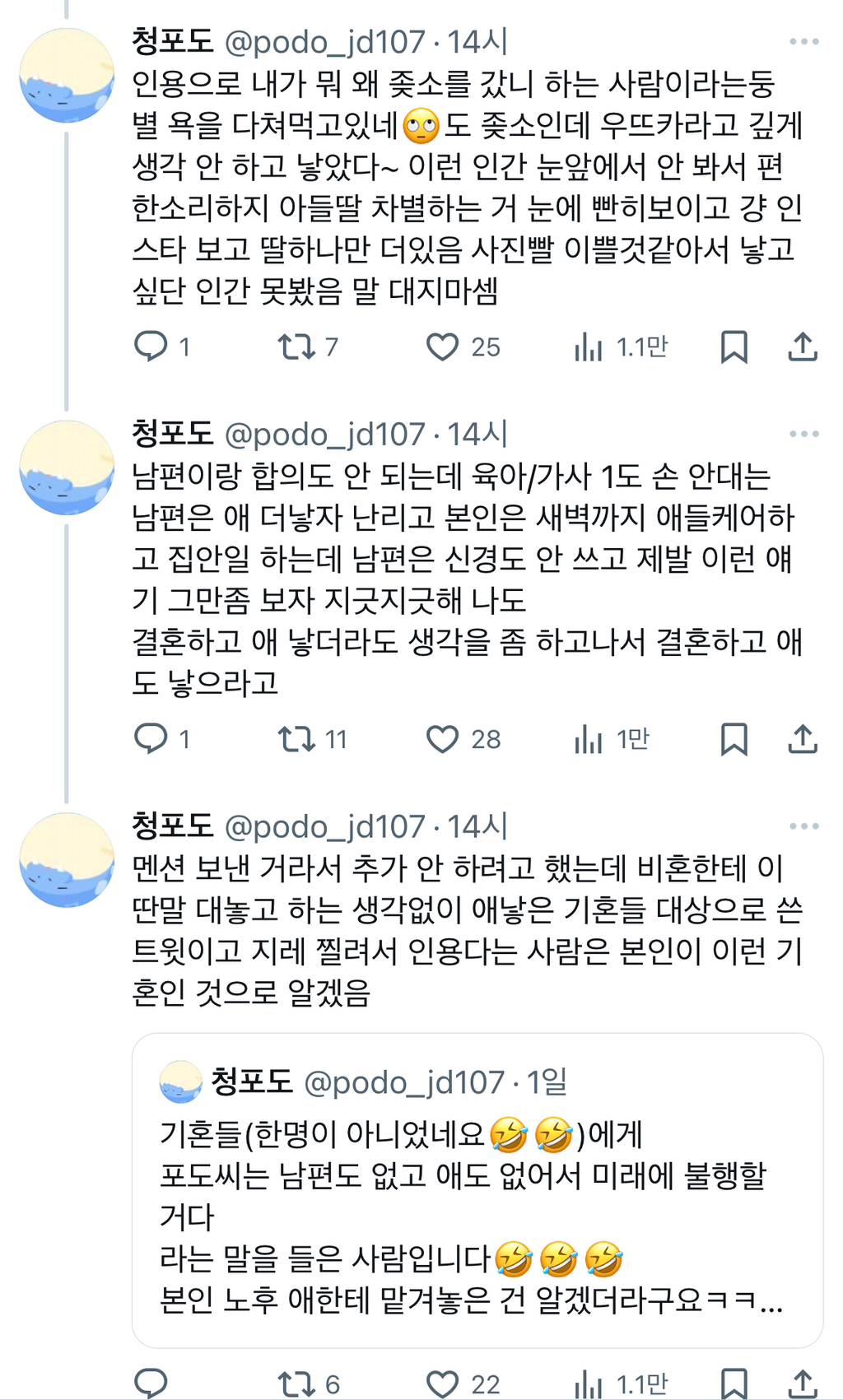 아니 결혼, 육아를 점심식사 고르는 것 보다도 심각하지 않게 여기고 아무렇게나 선택했다면 욕 먹을 만 하다고 보는데...? 차라리 저런 말을 안 하는 게 나음 ㅋ -