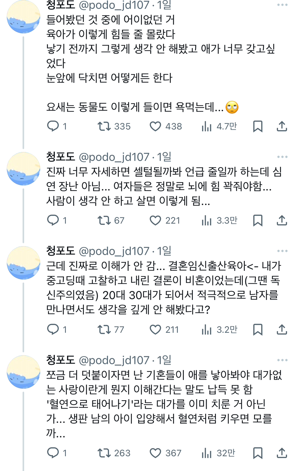 [스크랩] [기타]난 솔직히 육아 이렇게 힘들줄 모르고 결혼했다는 얘기 들을 때마다 음ㅋㅋ 생각이 없으니 결혼하는 게 맞긴 한듯 twt