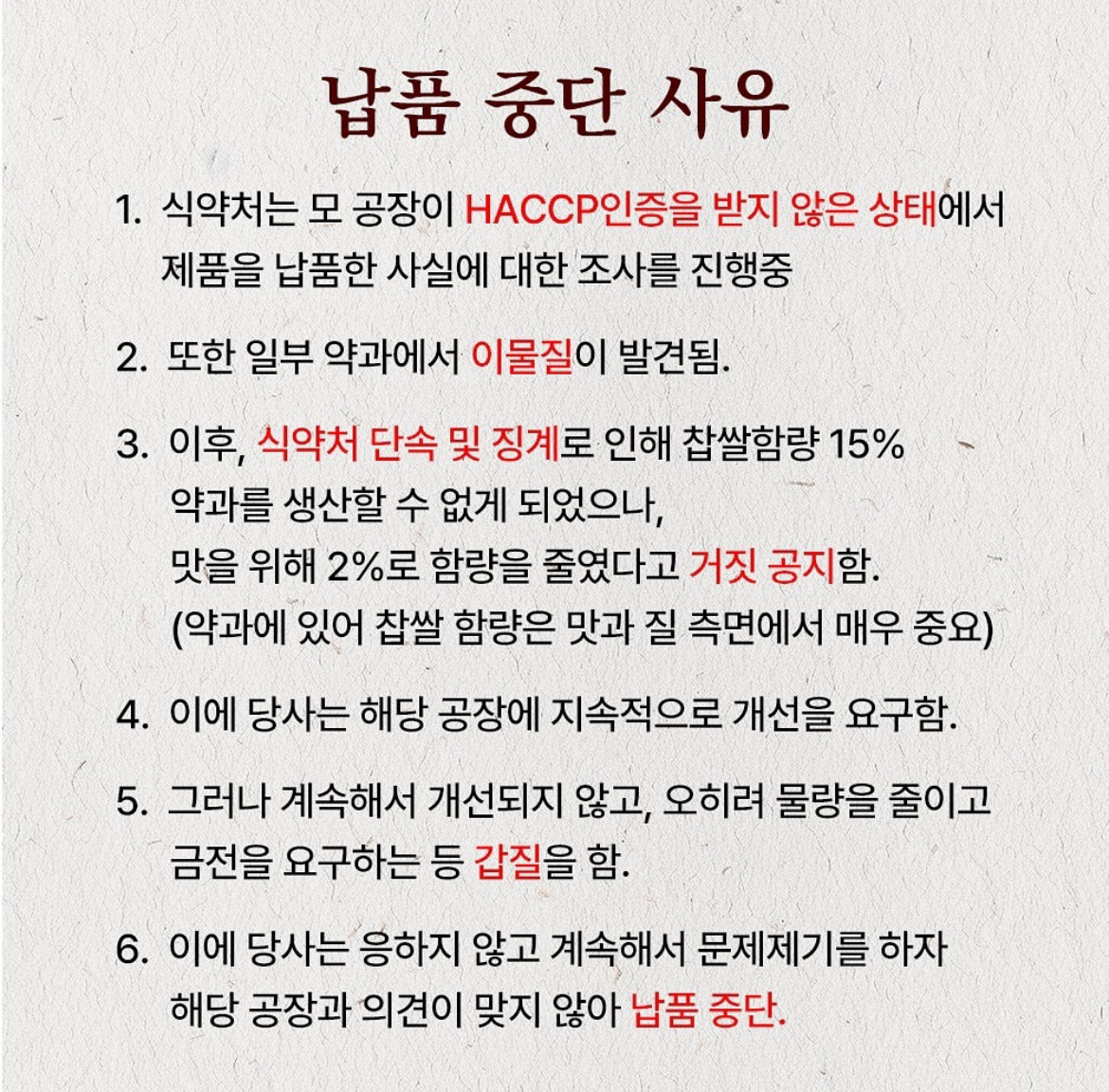 장인한과의 약과를 납품하던 장인더카페에 약과 납품을 종료한다는 사실 ;;