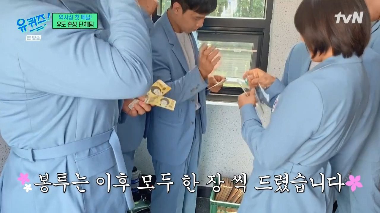 유퀴즈 퀴즈 정답을 맞추면 백만원을 주는데 그 상금 봉투에 유퀴즈 로고가 박혀 있음