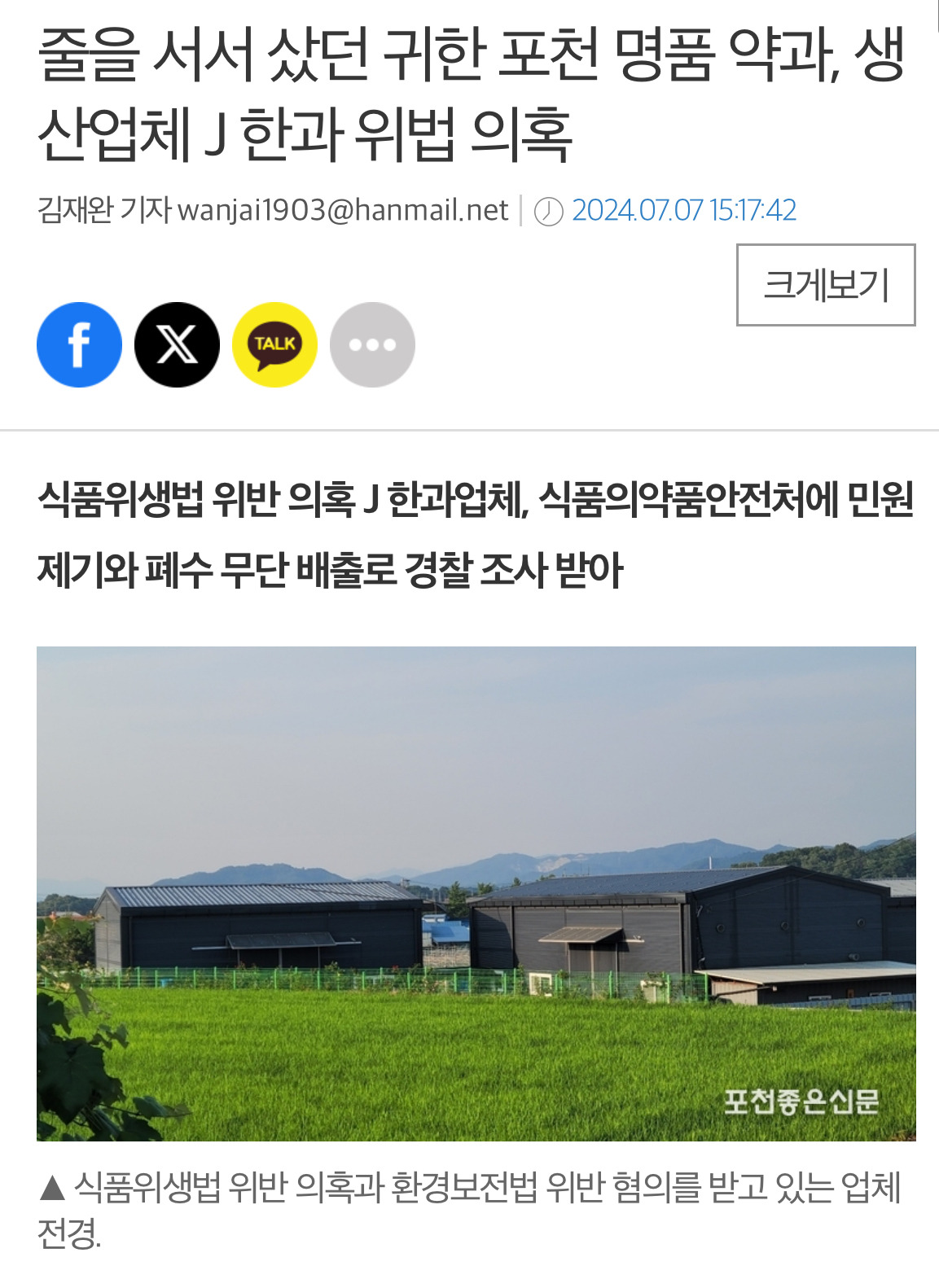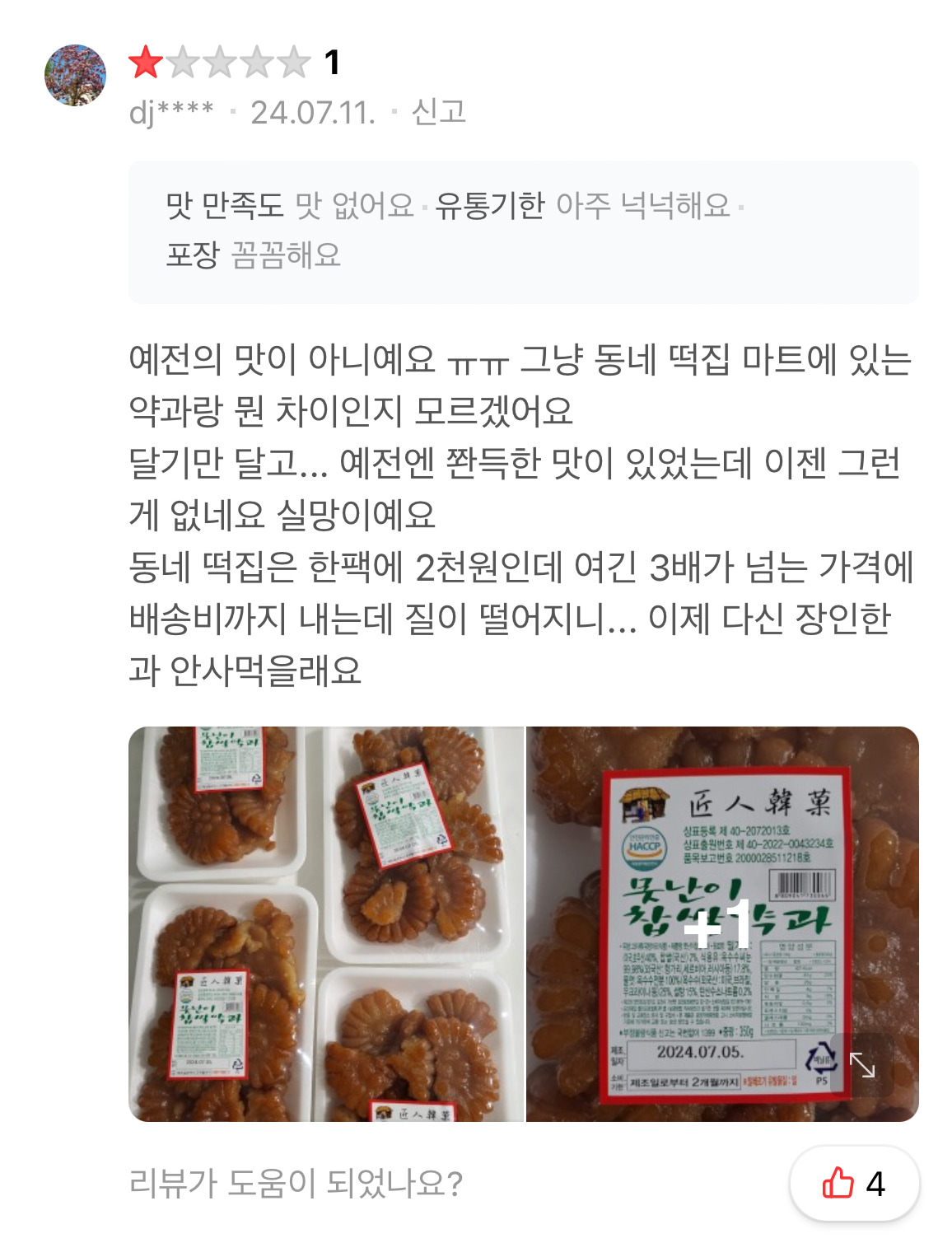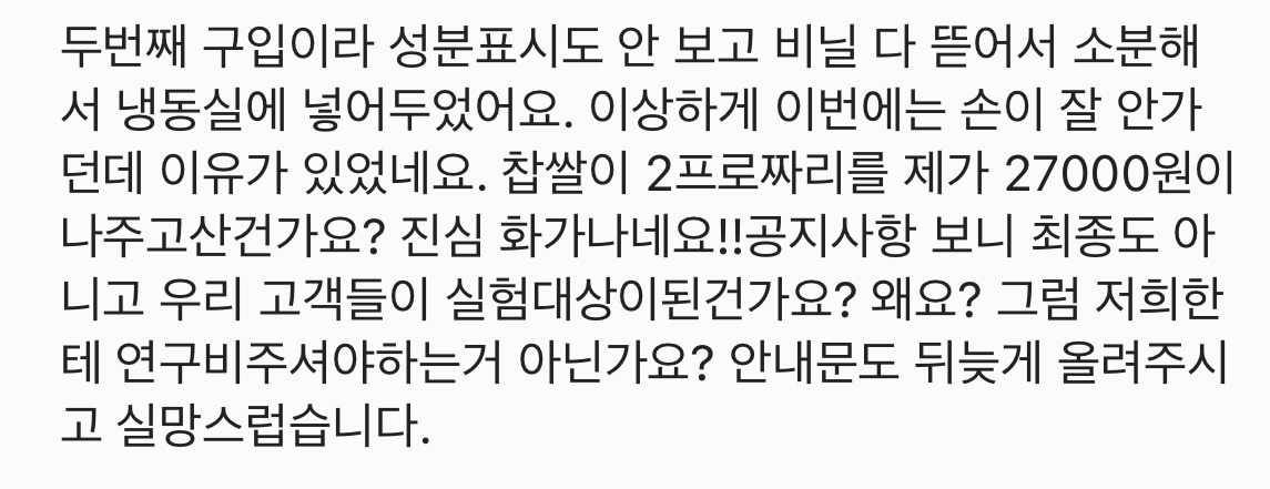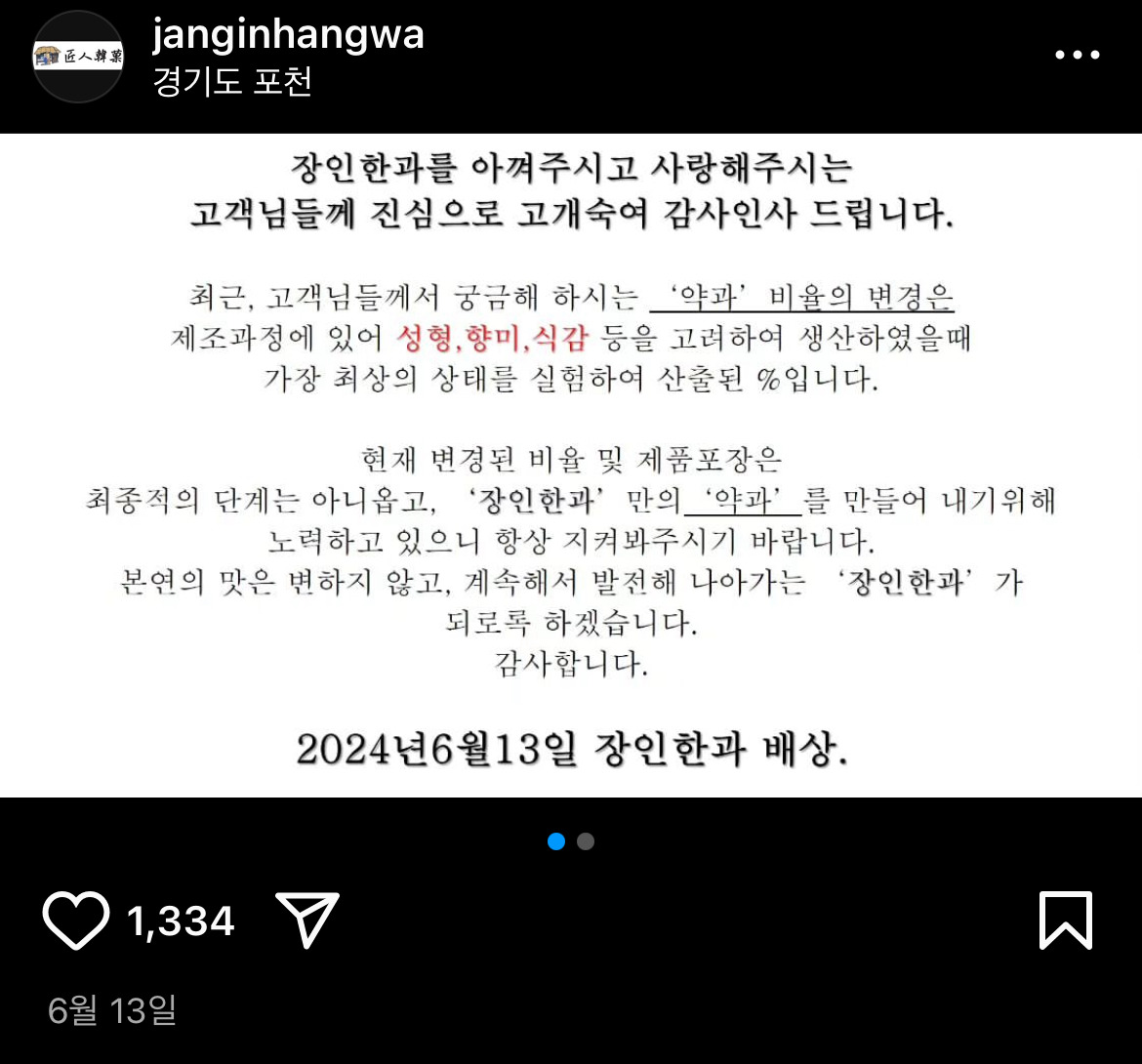 외에도... 지난 6월 장인한과에서 이런 공지를 게재했는데