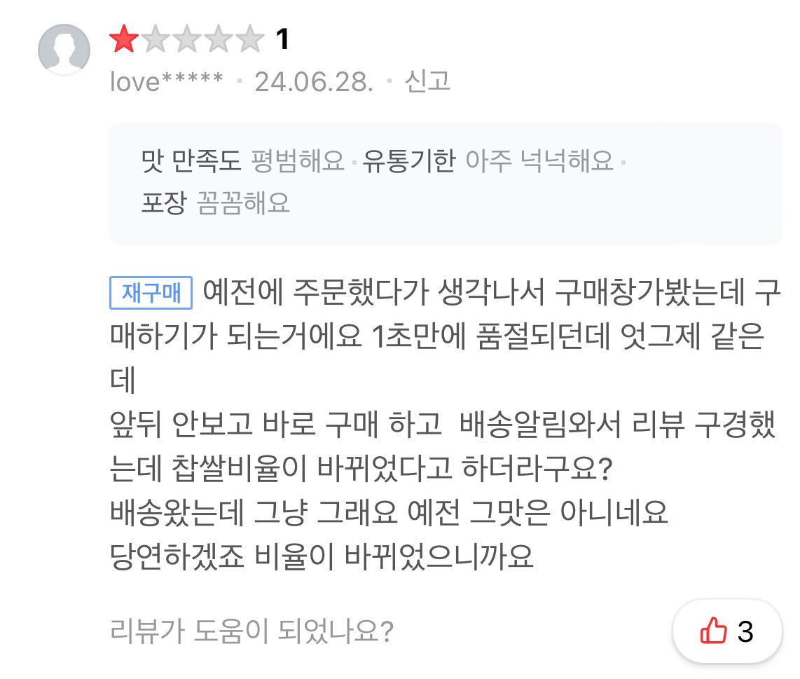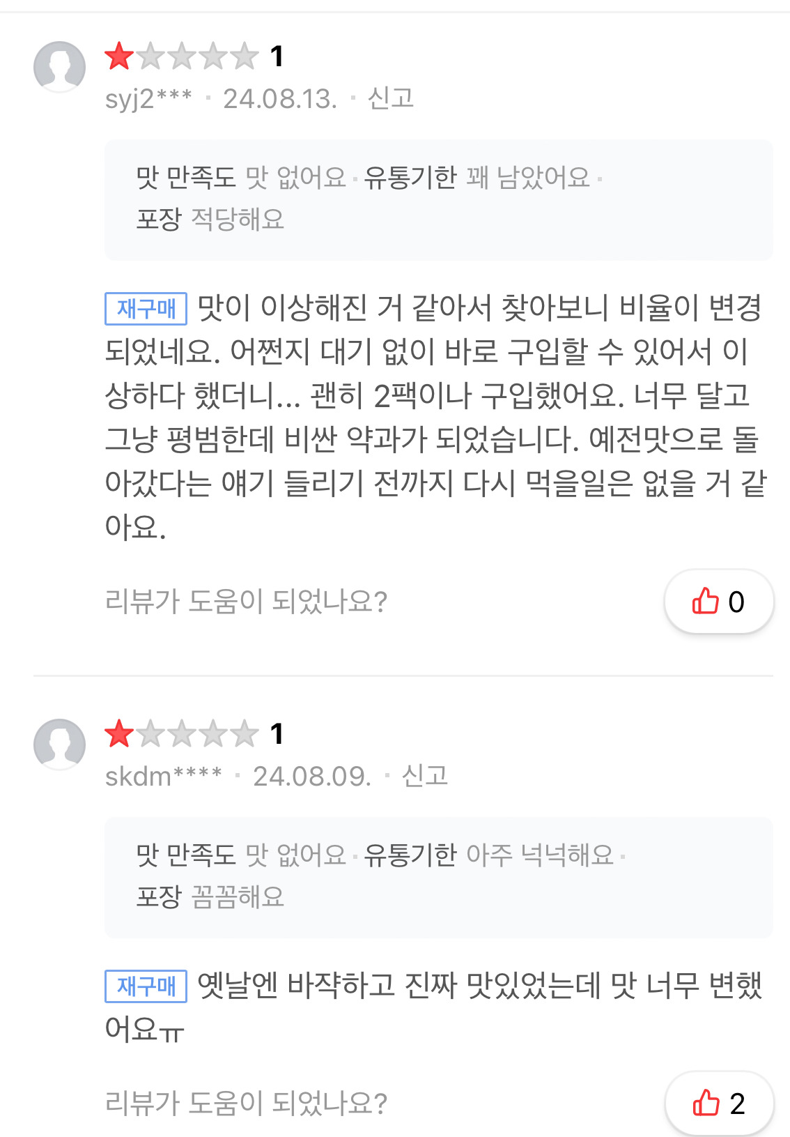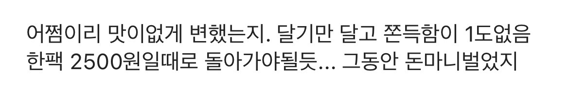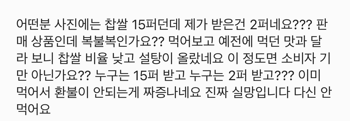 재구매한 사람들 대부분은 맛이 변했다고 말하는 중... 아예 처음 먹어본 사람은 맛있다는 반응도 많긴 함!