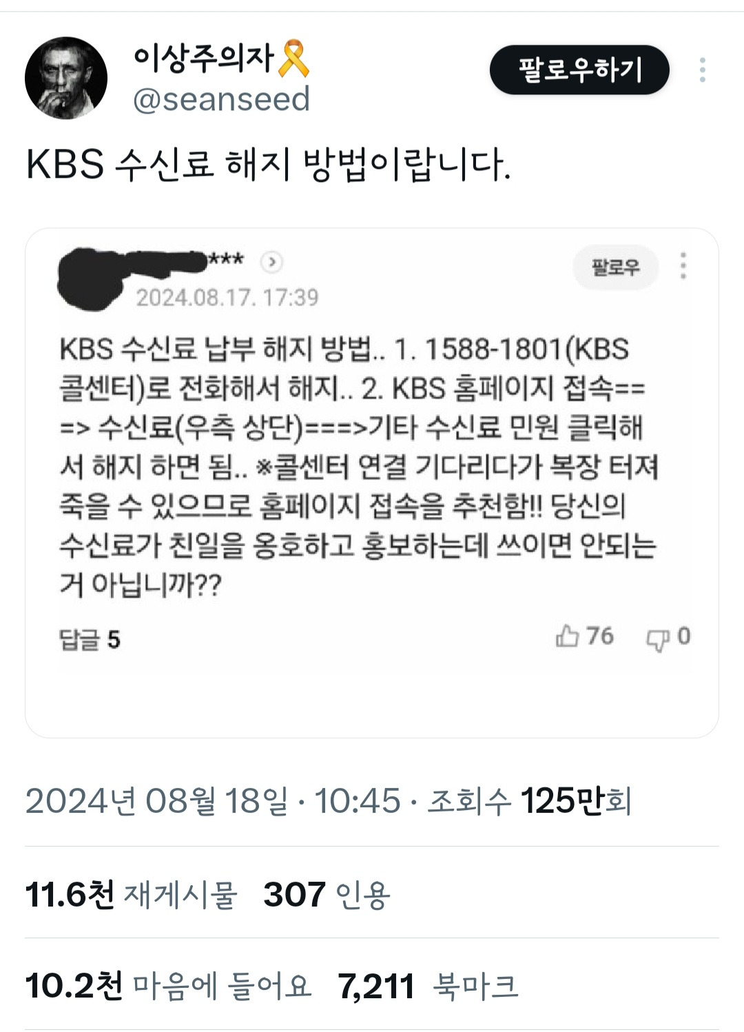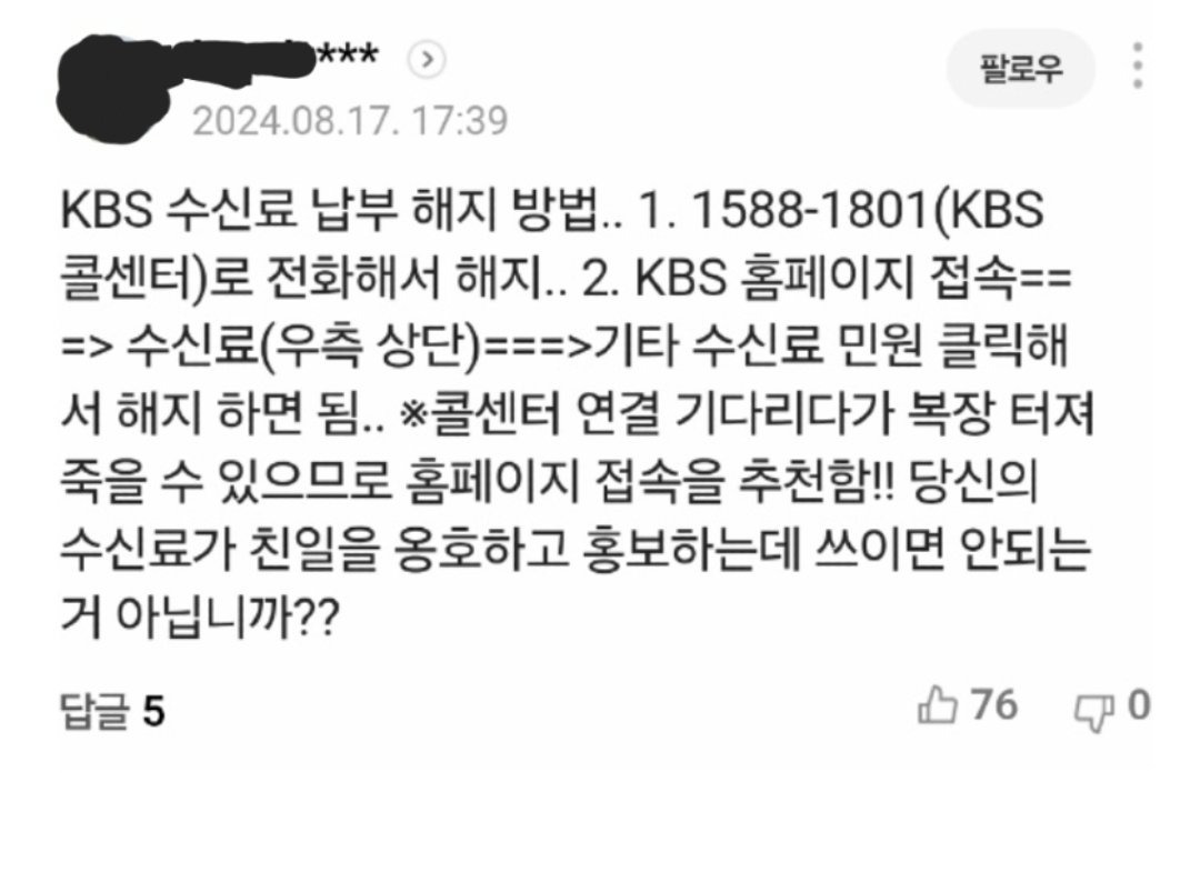 불시 방문 시에 티비 있으면 수신료 몇배 문다고 하니까 없는 여시들만 해지하길...