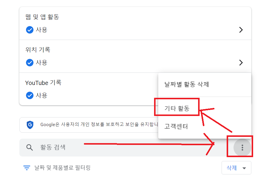 3. 화살표 방향의 "..." 을 클릭 후 "기타 활동" 클릭