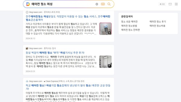 네이버‧X 등에서 ‘에어컨 청소 여성’ 검색