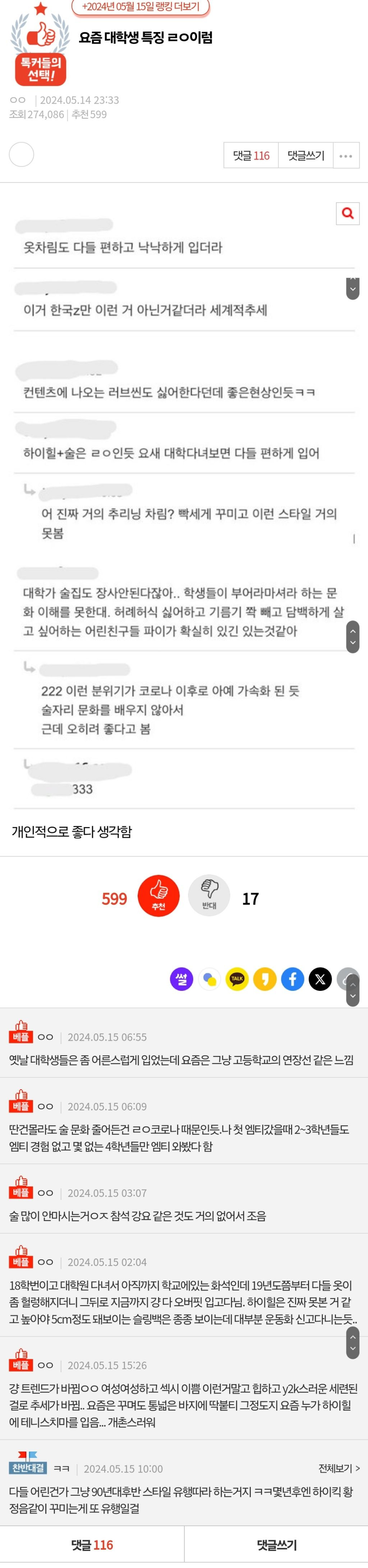작성자고양이준니기엽 작성시간 24.08.27 중심가나 핫플에는 아직 꾸미는 젊은이가 많은 것 같은데 대학가에는 진짜 줄은듯 ㅋㅋㅋ 나 13학번인데 나 학교 다닐 땐 빡세게 꾸미고 오는 사람들이 훨 많았거든...! 지금이 더 보기 좋은듯