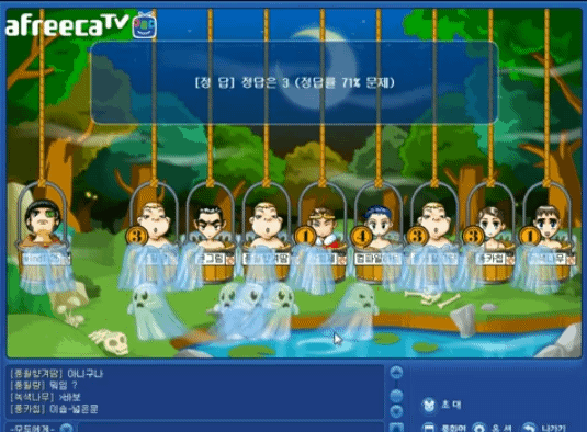 큐플레이에는 서바이벌,퀴즈퀴즈,아케이드,보드,거래,채팅등의 채널이 있었다