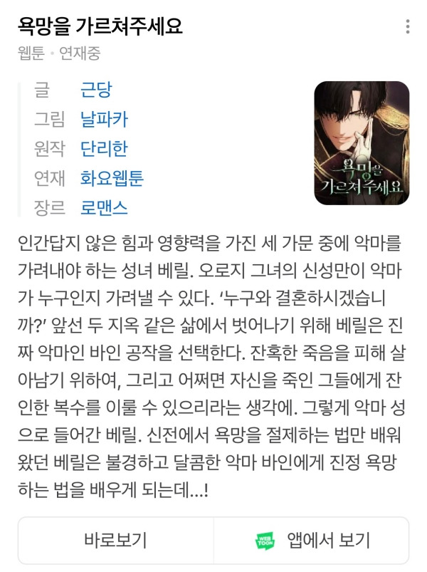네이버웹툰 화요일 연재작 <욕망을 가르쳐주세요>