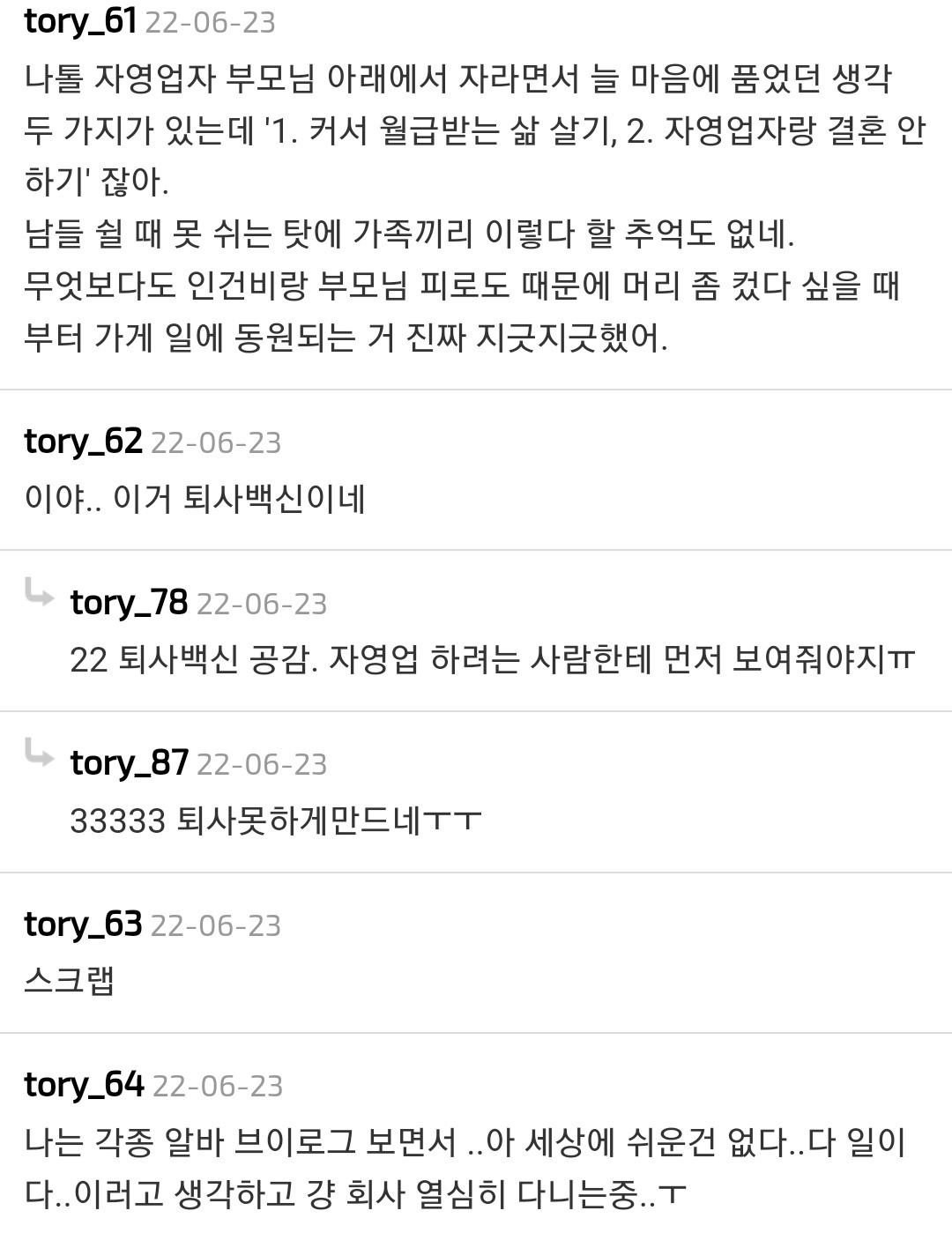 회사 다닐때보다 일 더 많이하고 스트레스 엄청 받는데 내가 가져가는게 회사 월급이랑 별 차이없을때 오는 그 현타는 뭐라 말할수없음..