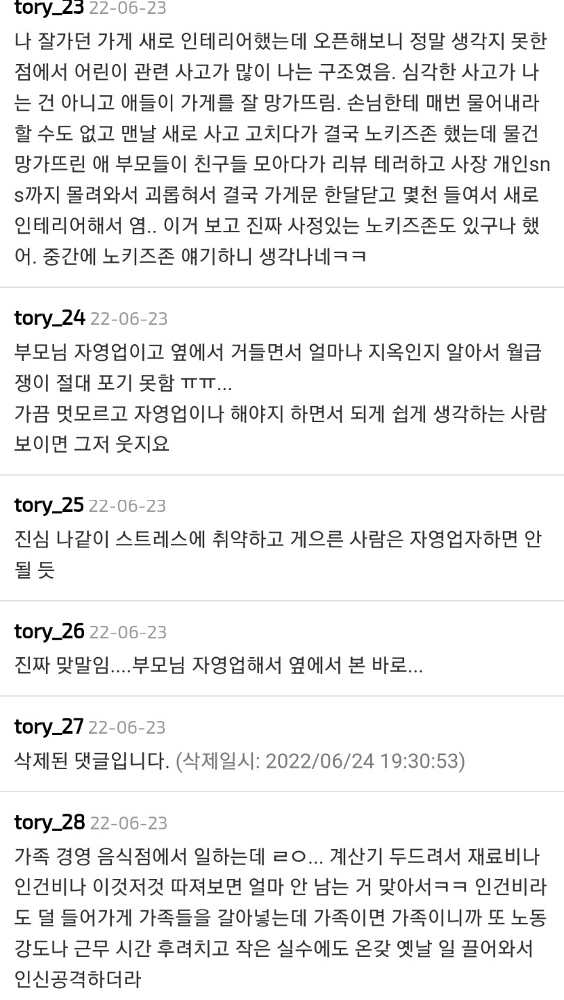 노키즈존은 항상 고민되는 부분인데 노키즈존을 하면 리뷰가 바로 박살나고 사방에 저격수가 생겨난다