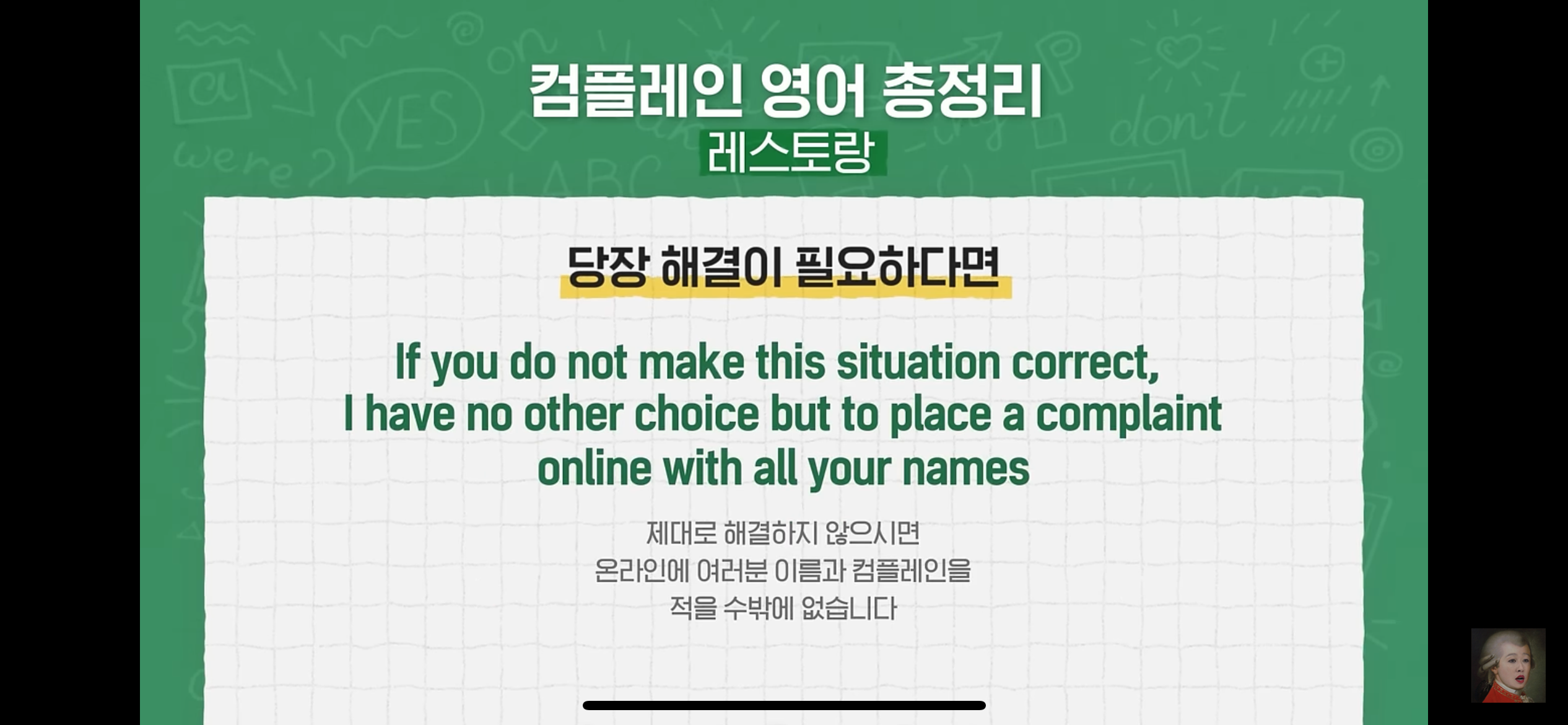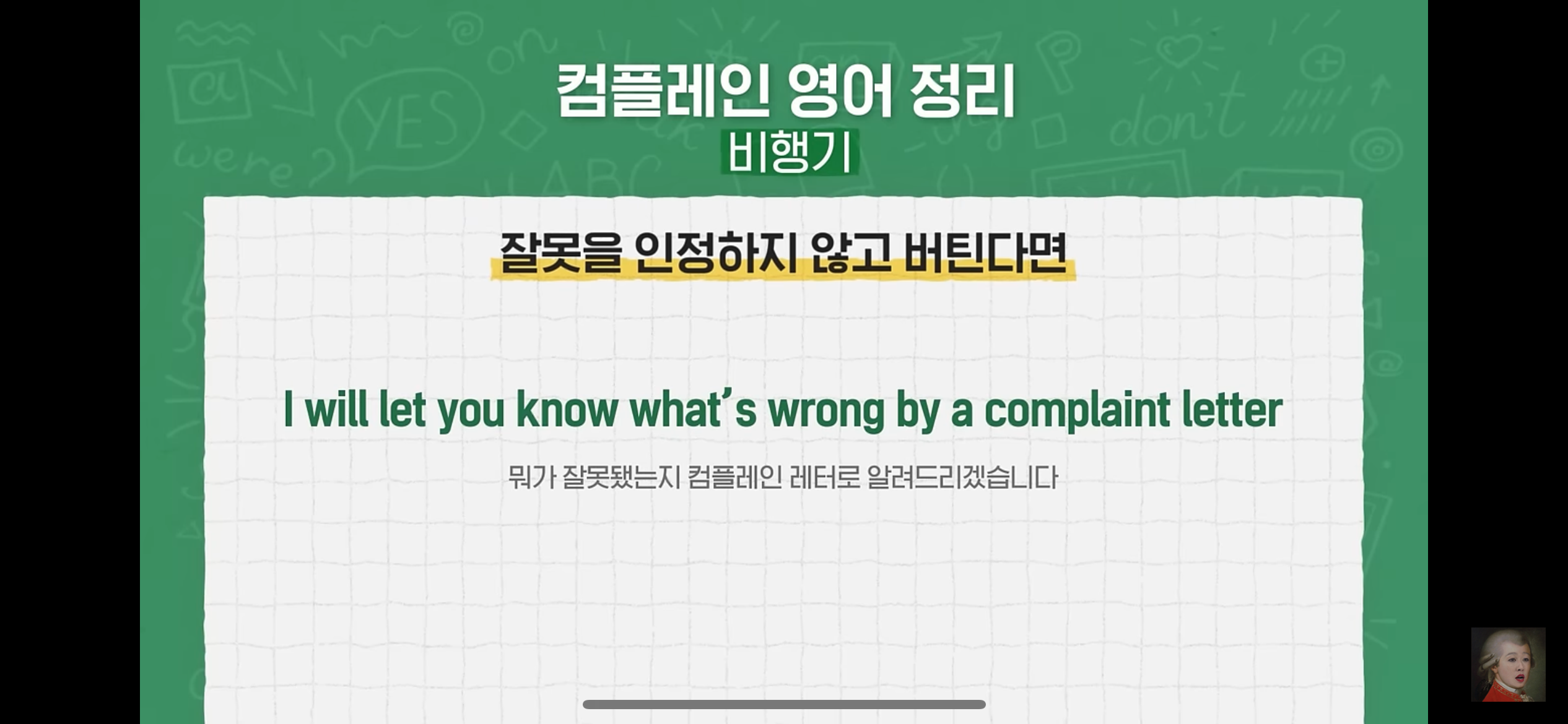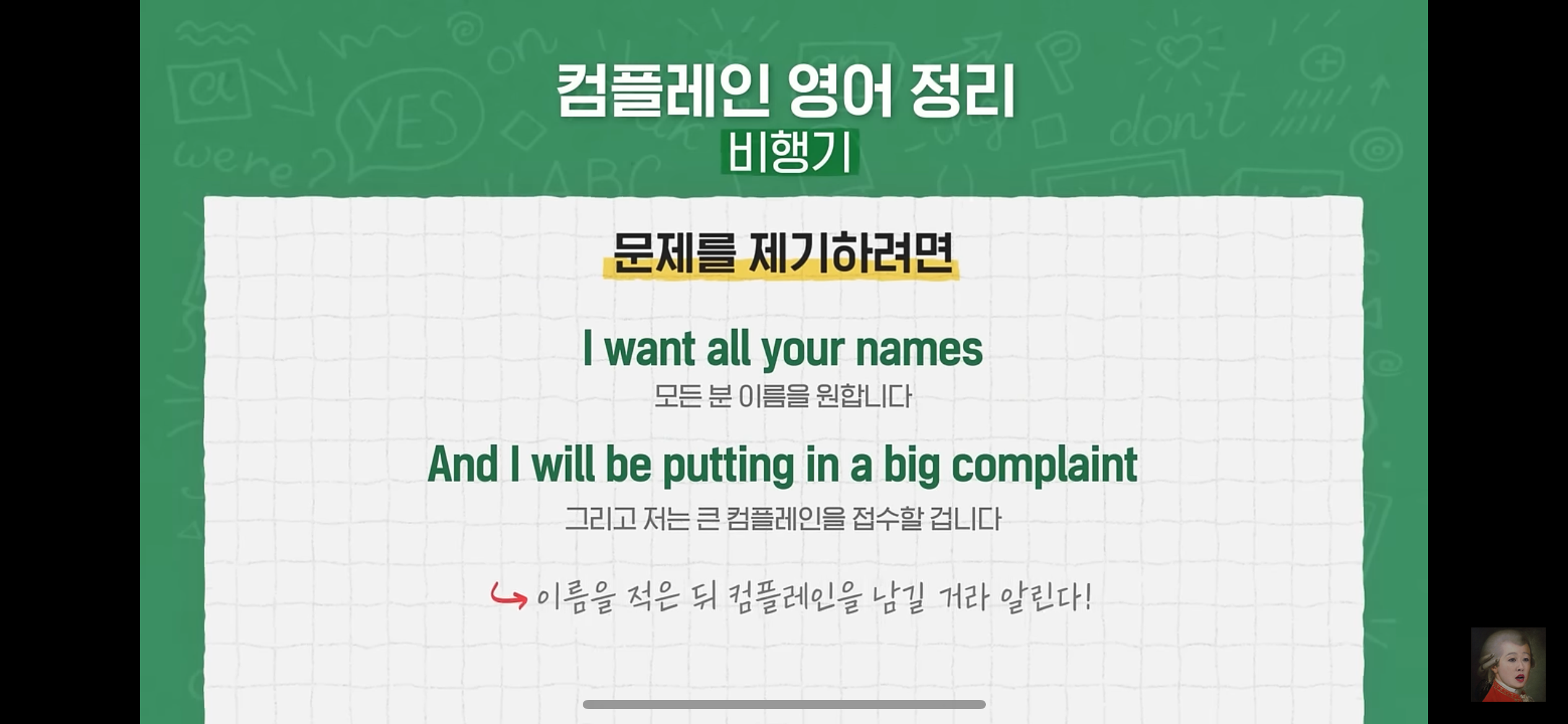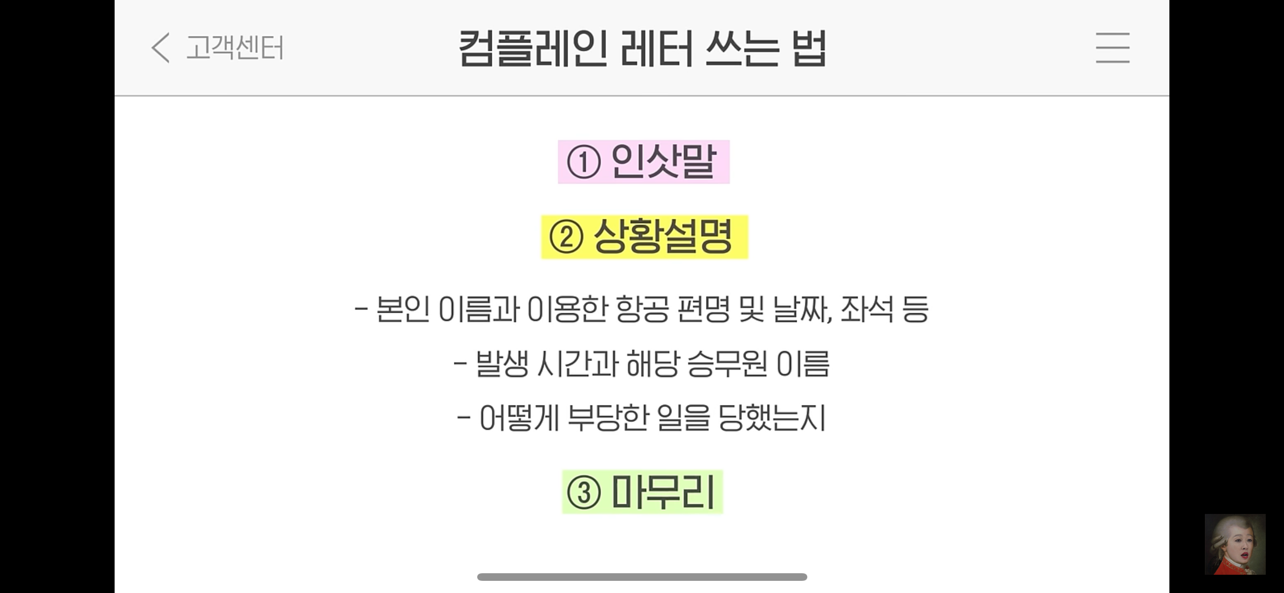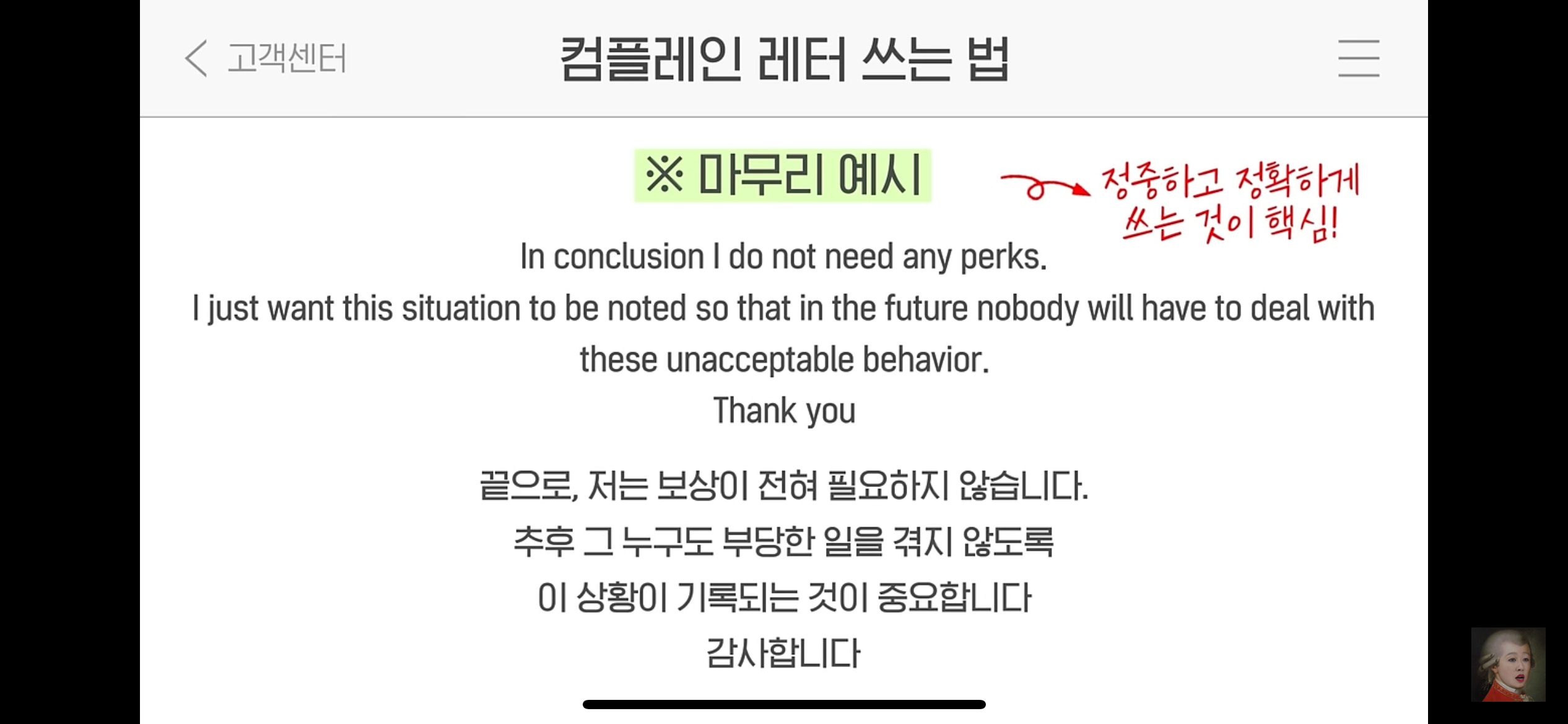 but 컴플레인 레터를 못쓰고 와서 좀 아쉬웠다는..