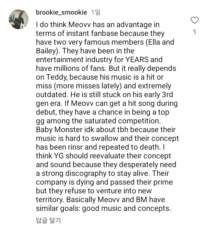 베이비몬스터가 입지가 애매해질거라고 생각해
