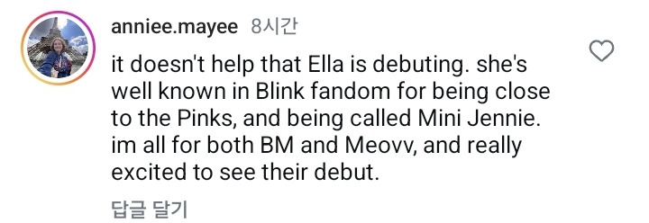 작성자럭키비키 내 좌우명 작성시간 24.08.30 둘 다 해 ‼️ 베몬에 그 노래 짱 잘하는 친구도 제니 같던데 ㅋㅋㅋㅋ