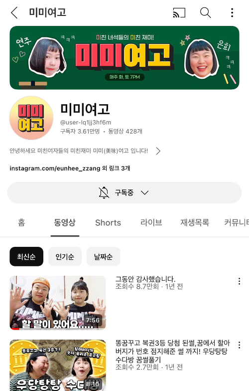 미미여고 채널고 은근 재밌으니까 추천 !