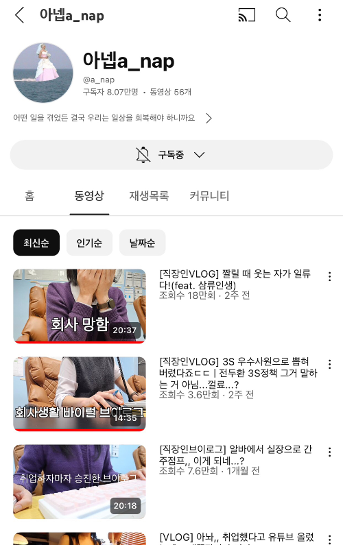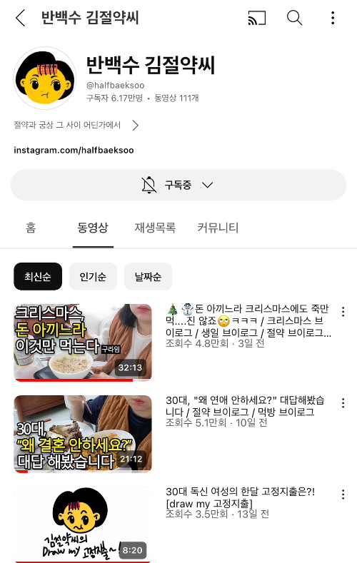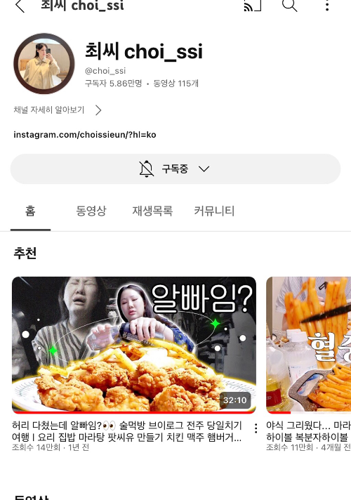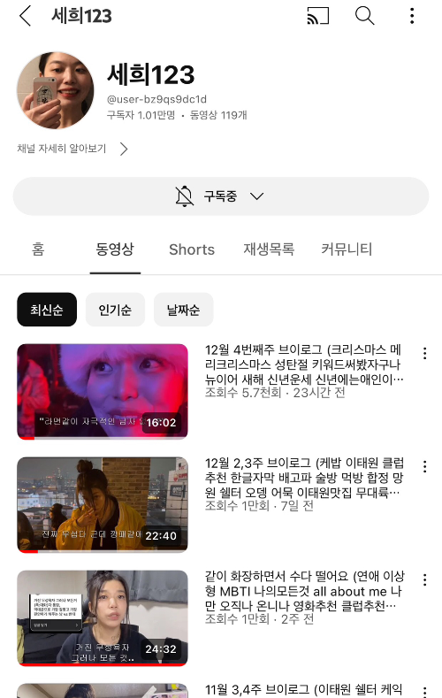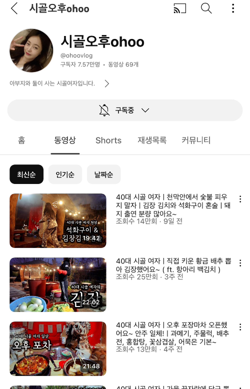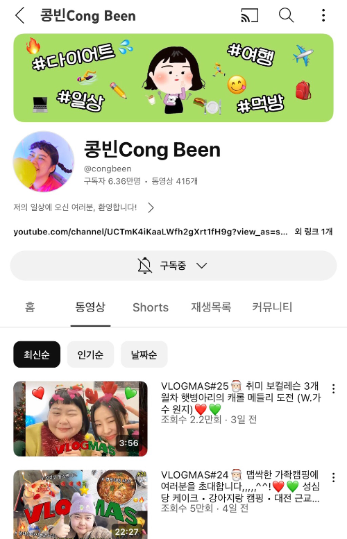 다이어트 유튜버였는데 지금은 그냥 브이로그 하시는 중 !