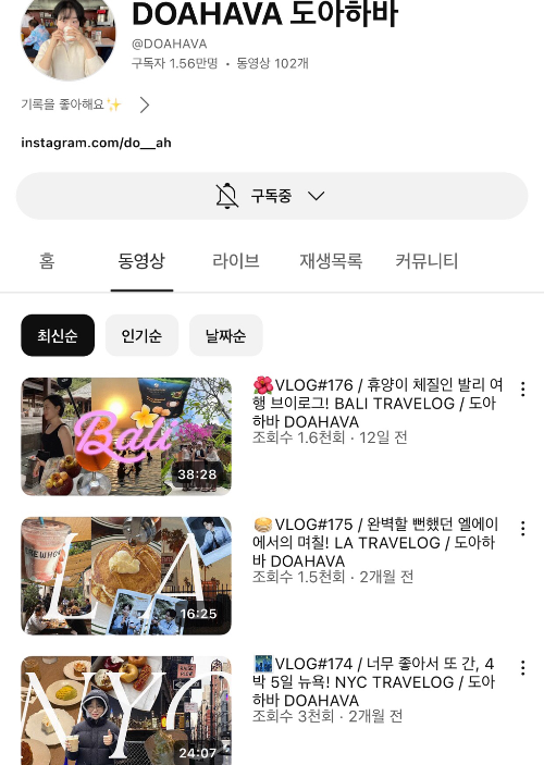 디자인이나 감각적인 센스가 드러나는 브이로그여요..
