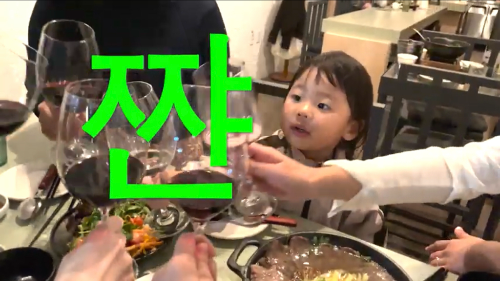 아버님하고 비빔밥이나 쌈싸서 먹지희 먹여줄 때 얼굴은 안 나오지만