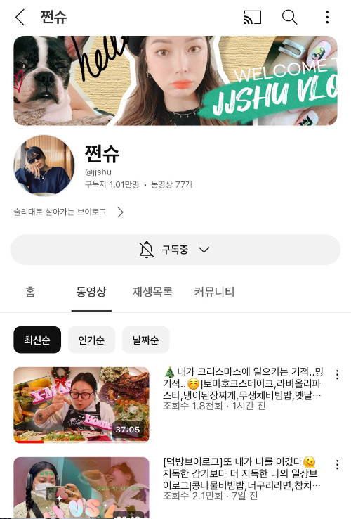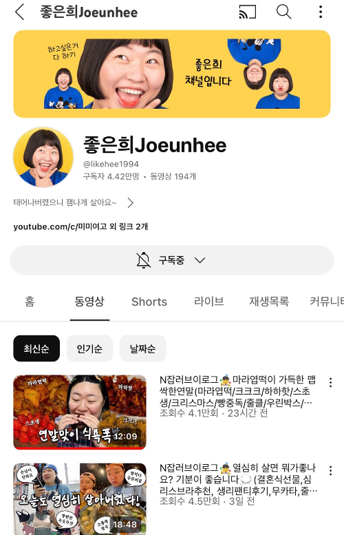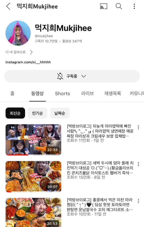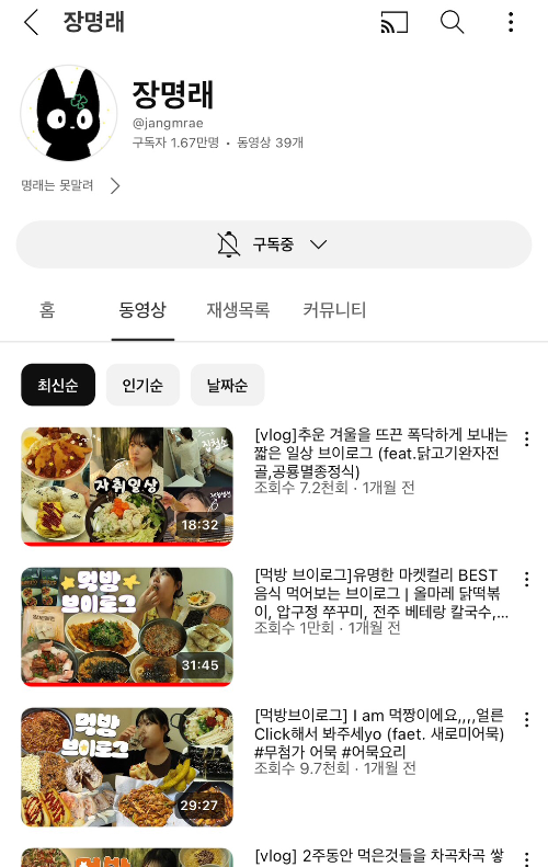 대놓고 먹방보단 요즘 이런 먹브이로그가 대세인 듯..