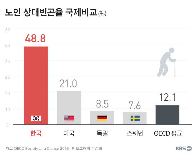 우리나라 노인 상대빈곤율은 OECD 평균의 4배임