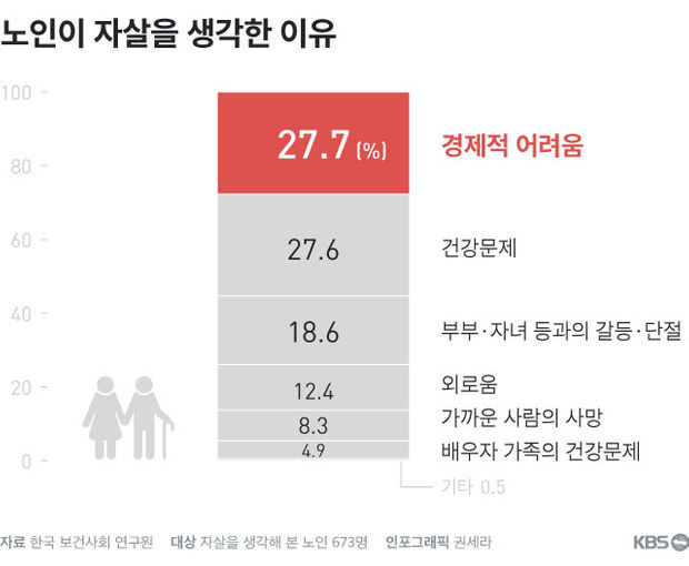 노인들이 자살을 생각하는 이유 중 1위가 바로 경제적 어려움