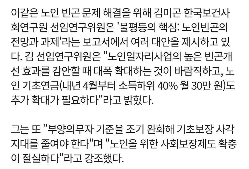 노인들의 경제상황, 특히 빈곤층 노인들의 경제상황은 심각함