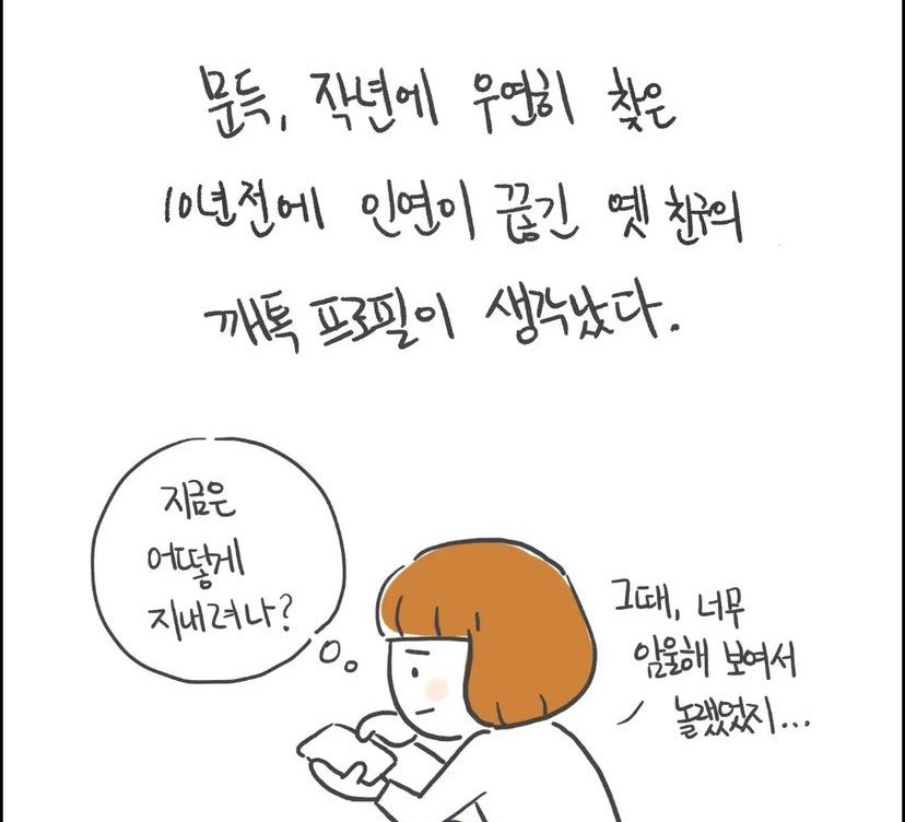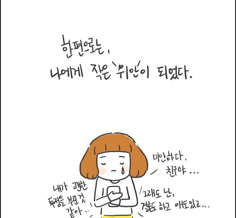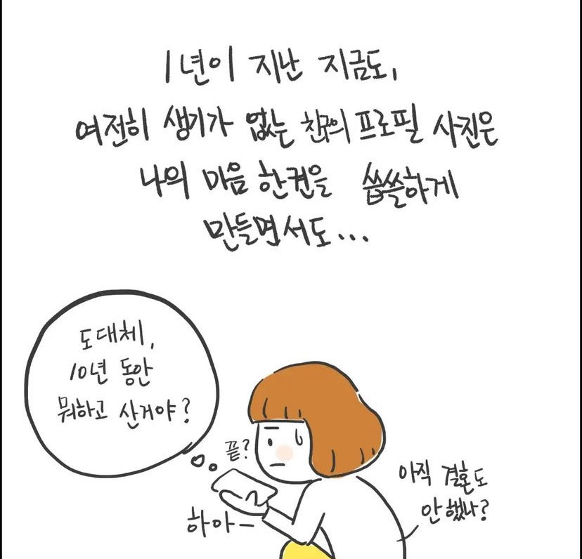 [흥미돋][인스타툰]오늘따라 내가 하찮게 느껴지는 날 작성자두바이말랑카우|작성시간24.08.31|조회수49,574 목록 댓글 583 글자크기 작게가 글자크기 크게가 출처: 여성시대 두바이말랑카우 https://brunch.co.kr/@sharppen01/59 다음검색 현재 게시글 추가 기능 열기 북마크 공유하기 신고 센터로 신고 댓글 댓글 583 댓글쓰기 답글쓰기 댓글 리스트 작성자내일도집에가고싶다 | 작성시간 24.09.01 와 진짜 음침하다.... 작성자일렉짜장! | 작성시간 24.09.01 에? 작성자당참면 | 작성시간 24.09.02 글삭했네 ㅋㅋㅋㅋ진짜 음침하다..프사 안바꾸는사람 얼마나많은디.. 작성자새콤달콤 캐치!티니핑 | 작성시간 24.09.07 ….???? 와 내가 뭘 본거야 작성자개쎄다쎄다 | 작성시간 25.07.22 ???????? 이미지 확대 댓글 전체보기