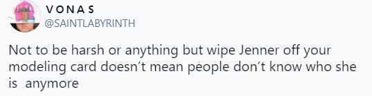 못되게 얘기하려는 거 아닌데 니 이름표에서 ‘제너’ 성을 뺐다고 사람들이 갑자기 니가 누군지 모르게 되는 건 아님