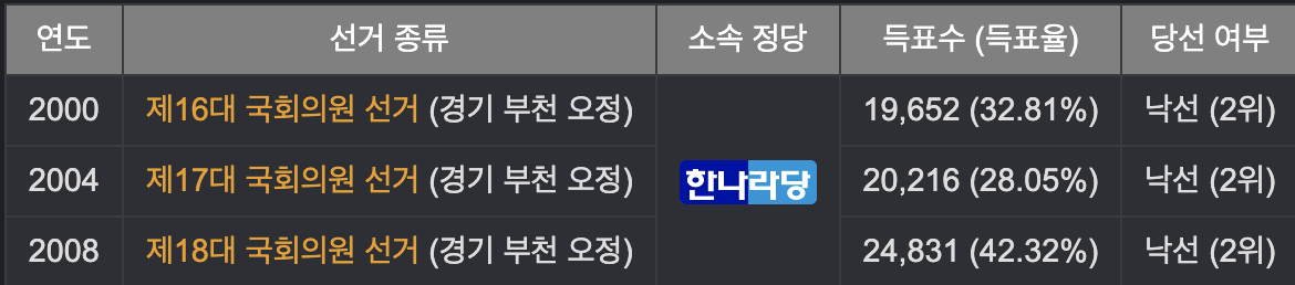 그러나 3번의 도전 끝에 낙선해서 결국 국회의원 뱃지는 달지 못했지 ㅎㅎ