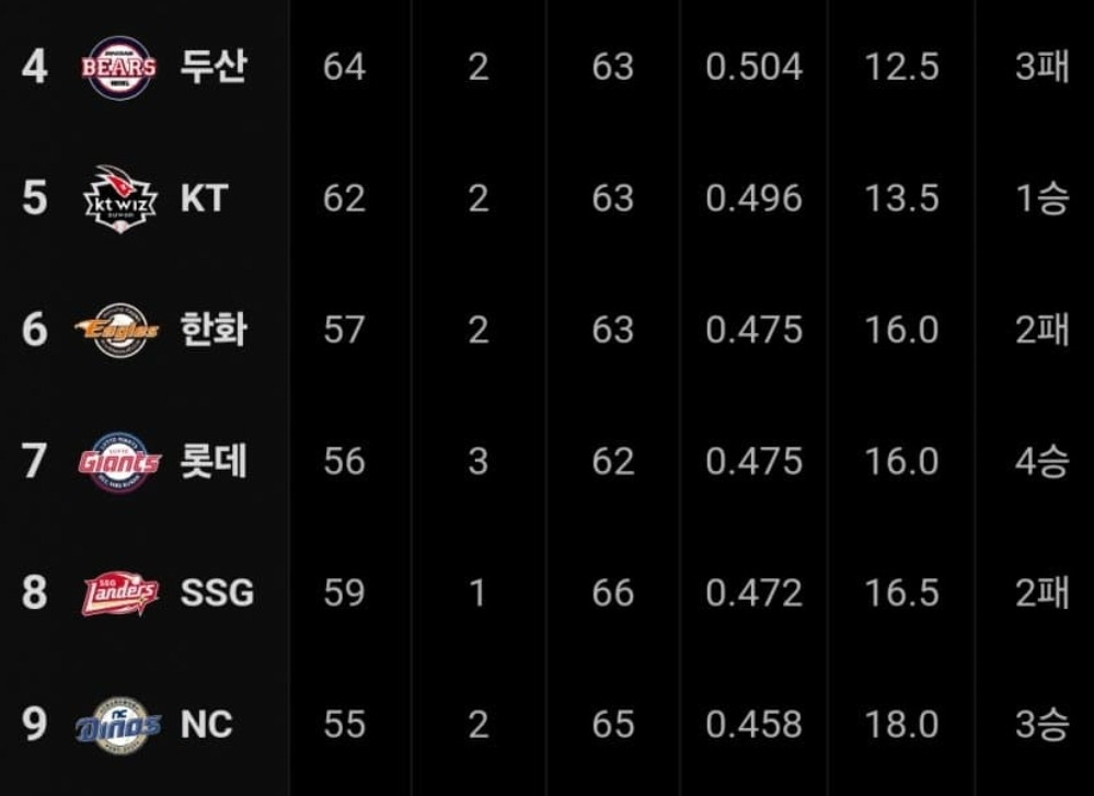 [흥미돋][KBO] 혼돈 그자체인 중하위권 싸움 작성자걈뱌샵|작성시간24.09.01|조회수11,979 목록 댓글 64 글자크기 작게가 글자크기 크게가 출처: https://theqoo.net/square/3387216355시즌 말까지 중위권 지키던 팀들은 힘이 많이 빠진 모습이고오히려 하위권팀들이 분위기타면서 대혼돈의 시대삐끗하면 주르륵 가능한 3경기 내외차진심 끝날때까지 끝난게 아닐듯 다음검색 현재 게시글 추가 기능 열기 북마크 공유하기 신고 센터로 신고 댓글 댓글 64 댓글쓰기 답글쓰기 댓글 리스트 작성자오민수 | 작성시간 24.09.02 한화야 좀만더 힘내라 작성자오후1시34분 | 작성시간 24.09.02 흠 키움은 안정적이군요. 얼른 고교야구 봐야지 작성자유우으리심장 | 작성시간 24.09.02 한화야... 한화야... 팬들만 간절하냐고ㅠㅠㅠㅠㅠ 작성자KT wiz 33_박세진 | 작성시간 24.09.02 개위즈야 힘내라 작성자박뱡찬 | 작성시간 24.09.04 개두산 꼴등가자 ㅋㅋ 댓글 전체보기
