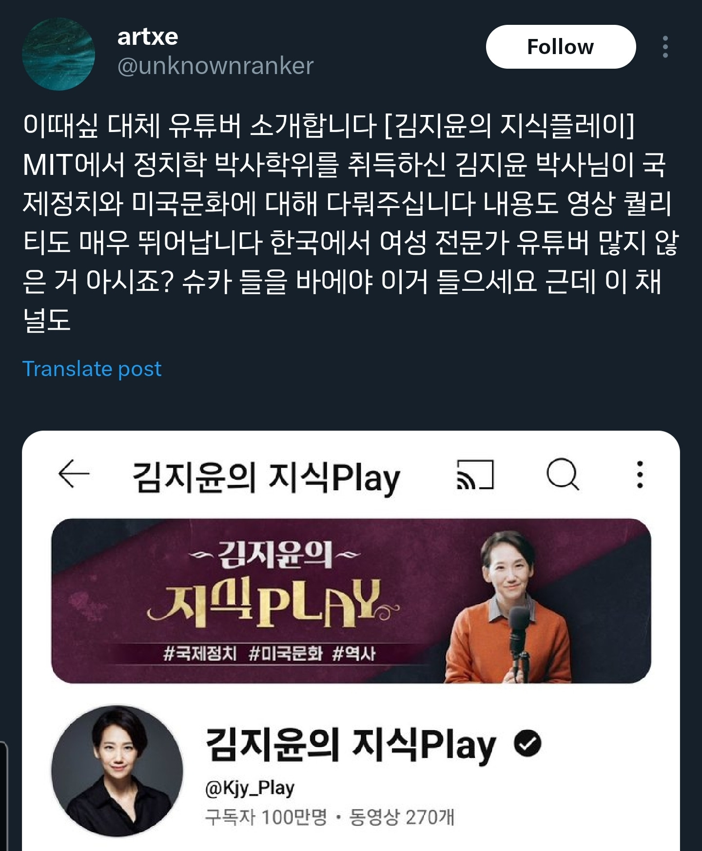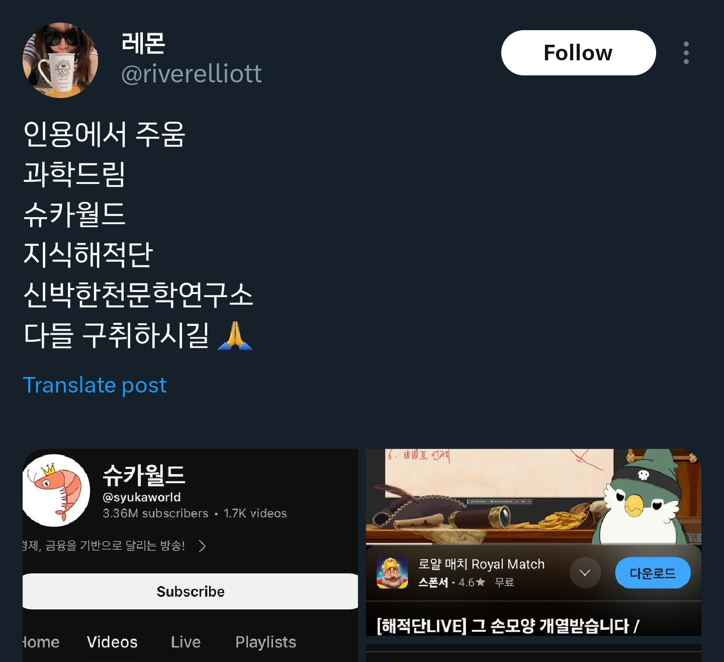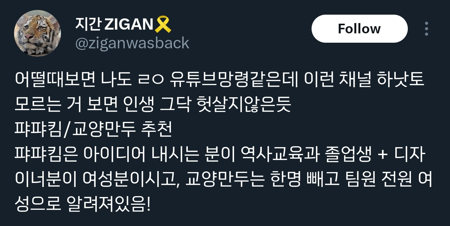 (여기서부턴 여시들이 추천하는 유튜버들)