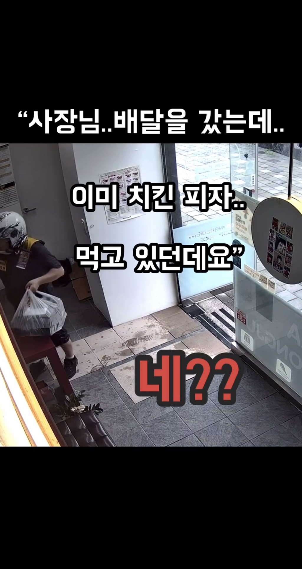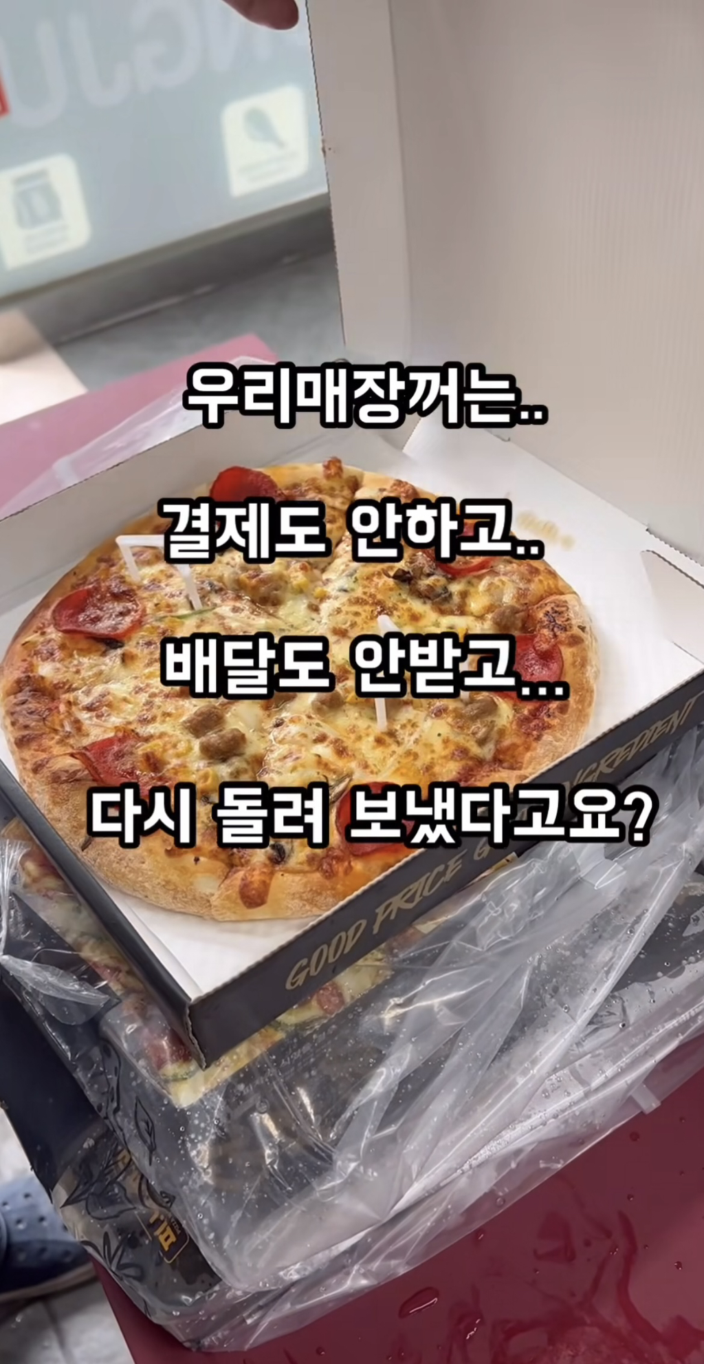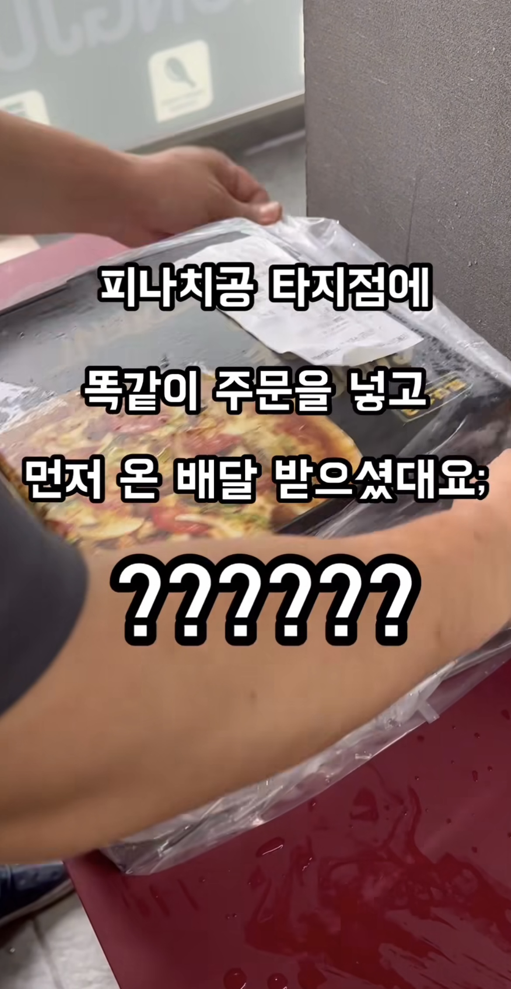 배달기사가 같은 브랜드 피자 드시고 계신거 보셨다고 하니 2개 지점에 똑같이 주문해서 먼저 온거 받아서 결제 했다고 함