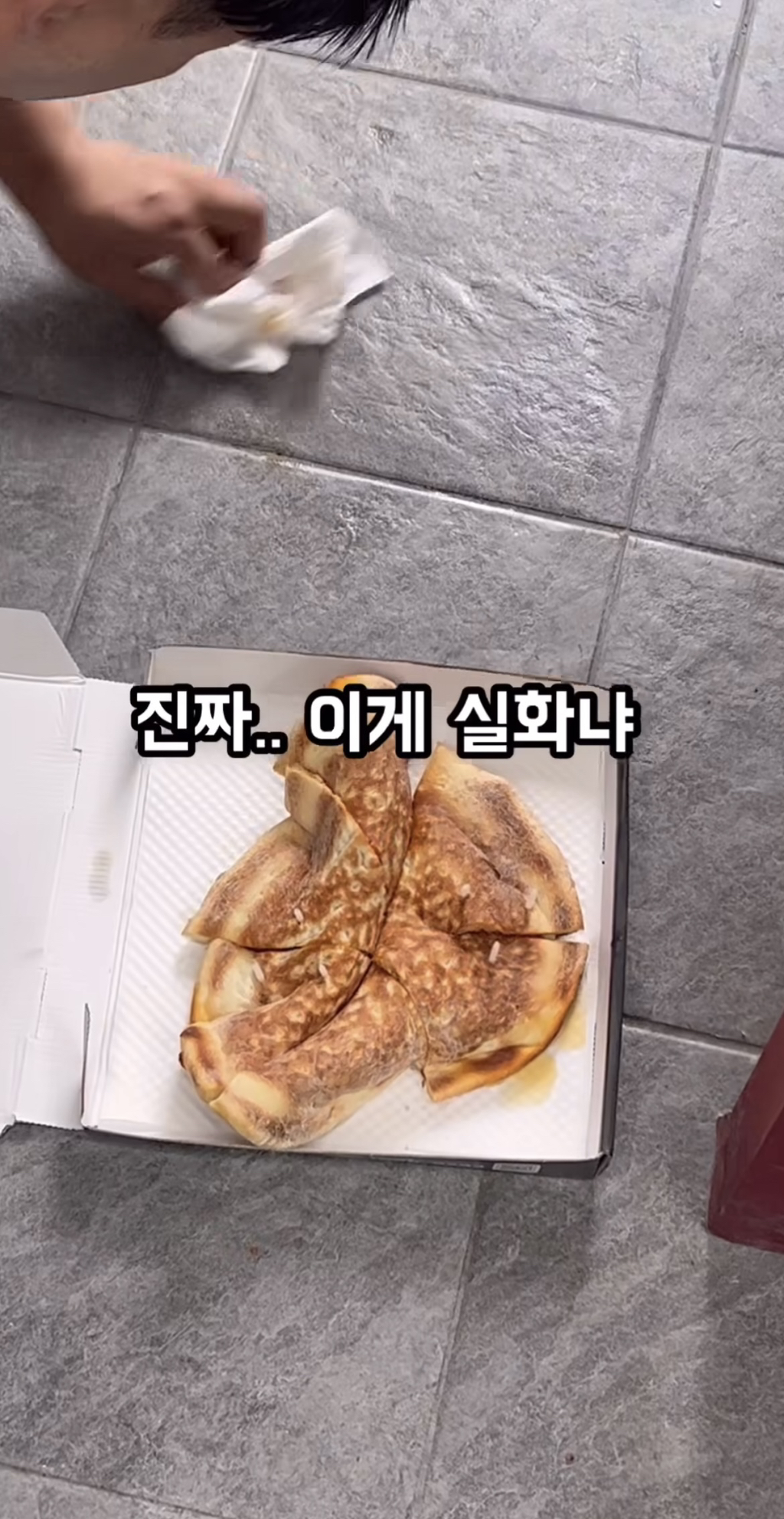 계속 문 두드리니 약 5분 후 입에 피자 문 상태로 나와서는 배달 시킨 적 없다고 함