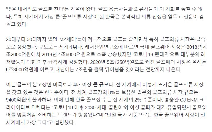 골프웨어 시장 규모는 한국이 미국보다 4배 이상임 ㅋㅋㅋ