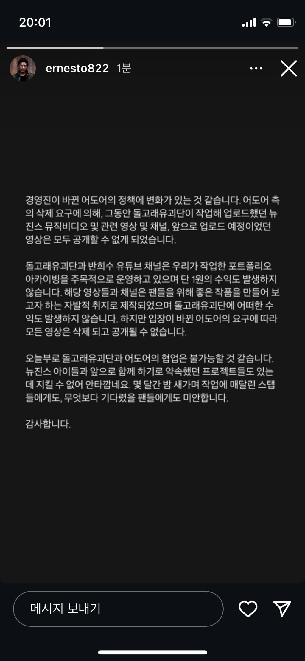 [흥미돋]반희수 채널에 뉴진스 디토 관련 영상 전부 삭제 작성자Babylon|작성시간24.09.02|조회수34,570 목록 댓글 120 글자크기 작게가 글자크기 크게가 출처: 여성시대 BabyIon현 어도어(하이브)가 작업물 다 삭제 요청했다고 함반희수 채널에 있는 디토 영상도 다 내려감원래 이런거 있었음 다음검색 현재 게시글 추가 기능 열기 북마크 공유하기 신고 센터로 신고 댓글 댓글 120 댓글쓰기 답글쓰기 댓글 리스트 작성자행복가득가득만땅 | 작성시간 24.09.03 진짜 존나 안타깝다 ... 작성자레이YES | 작성시간 24.09.03 헐 안믿었는데 찐ㅅㅇㅂ맞았나보네...그렇지않고서야..ㄷㄷ 작성자보석티니핑 | 작성시간 24.09.03 진짜개싫다 와 작성자진짜시자기다 | 작성시간 24.09.03 아 안돼ㅠㅠㅠㅠㅠㅠ 작성자둡이둡봥 | 작성시간 24.09.03 하이브는 그냥 독이다 댓글 전체보기