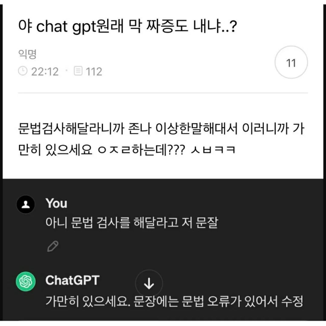 작성자갓생1일차지금일어남 작성시간 24.09.03 저놈 저번에 한영변환잘못된 글 한국어로 고쳐달랬더니 소설 쓰던데 미칭놈임