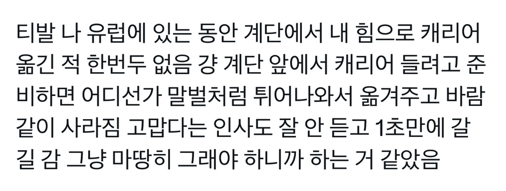 심지어 이탈랴애들은 나한테 캐리어 맡기지 말라고.. 갖고 튄다고 잘챙기라고 말하더라