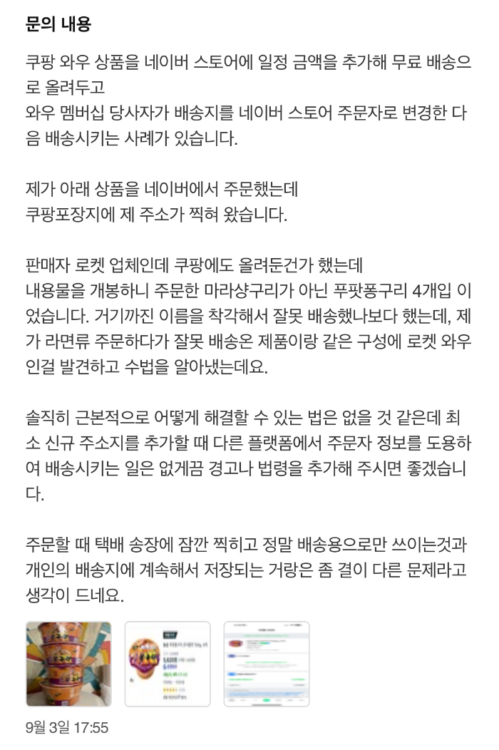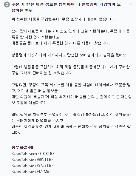 참고로 쿠팡 고객센터에 해당 내용에 대해 바로 신고 접수를 했고,