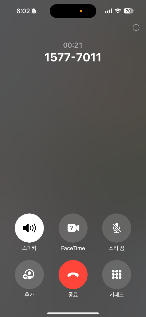 밑에는 조금 전 6시 넘어 통화한 스크린 샷이야.