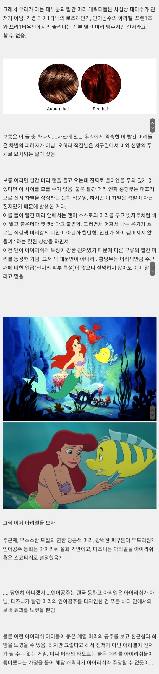 그리고 이러한 논리는 백인인셀들이 먼저 제기한 논리였는데 이는 진저와 적발의 차이에 대한 몰이해에서 비롯된 것. 에리얼은 진저가 아닙니다.아이리쉬도 아닙니다 이에 대한 설명 아래 참고( 출처: 해연갤)