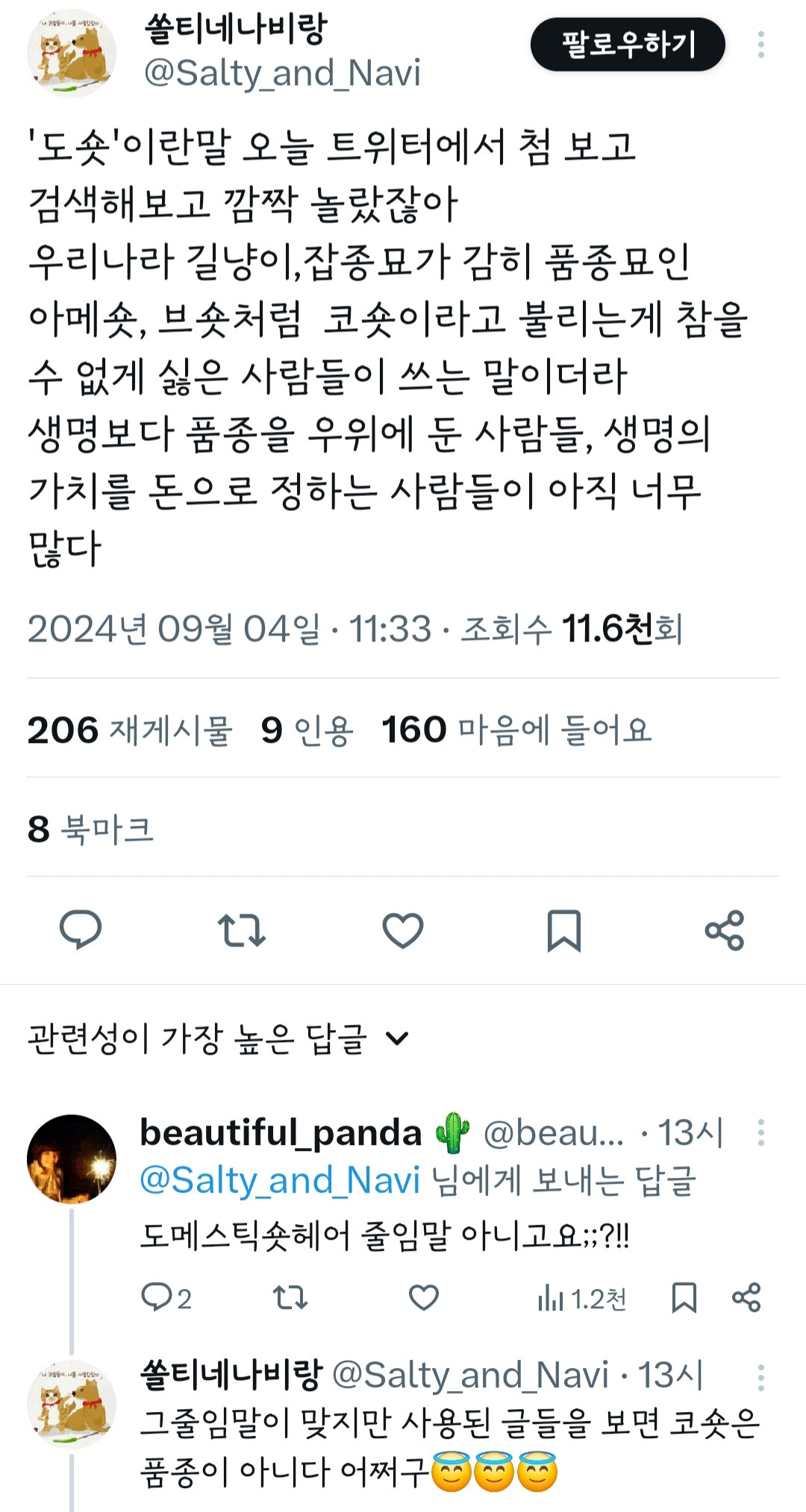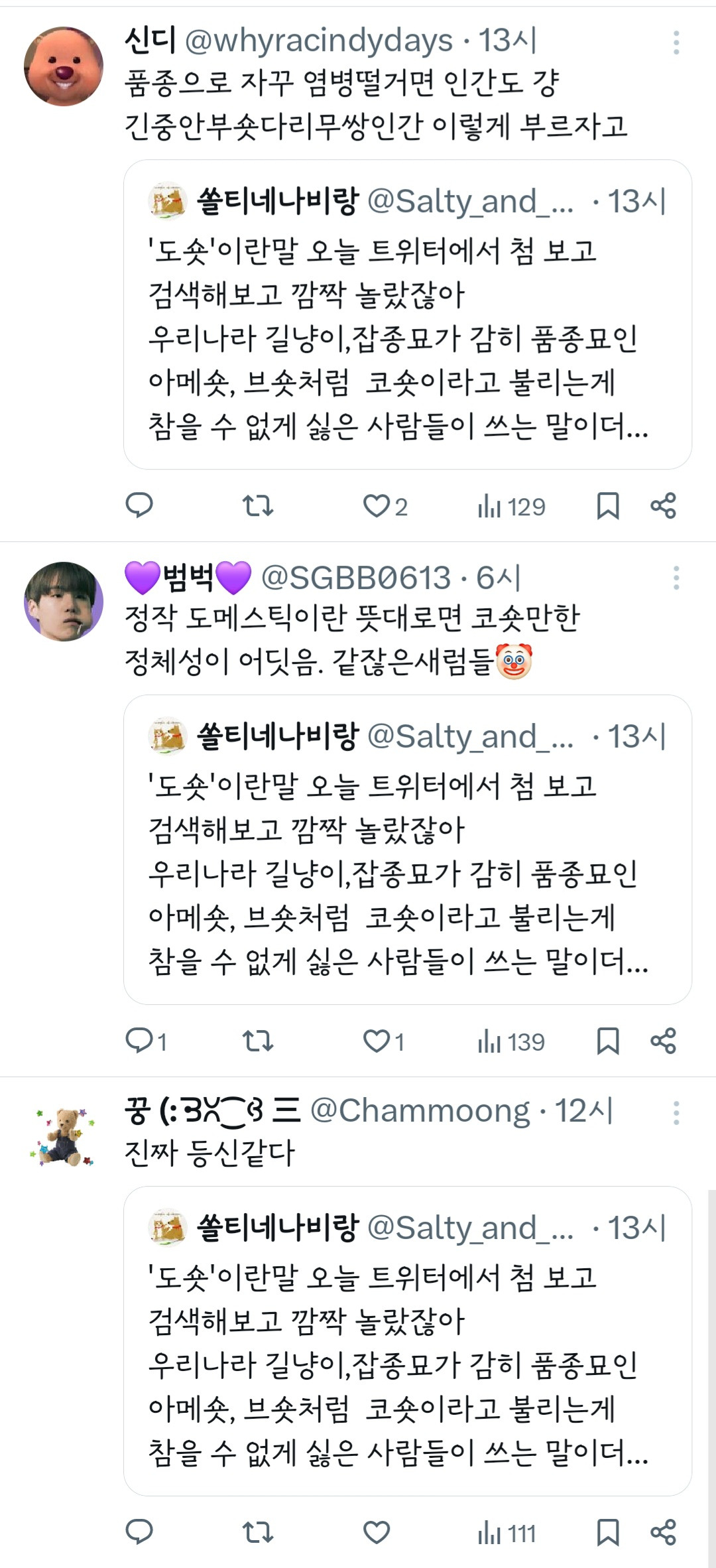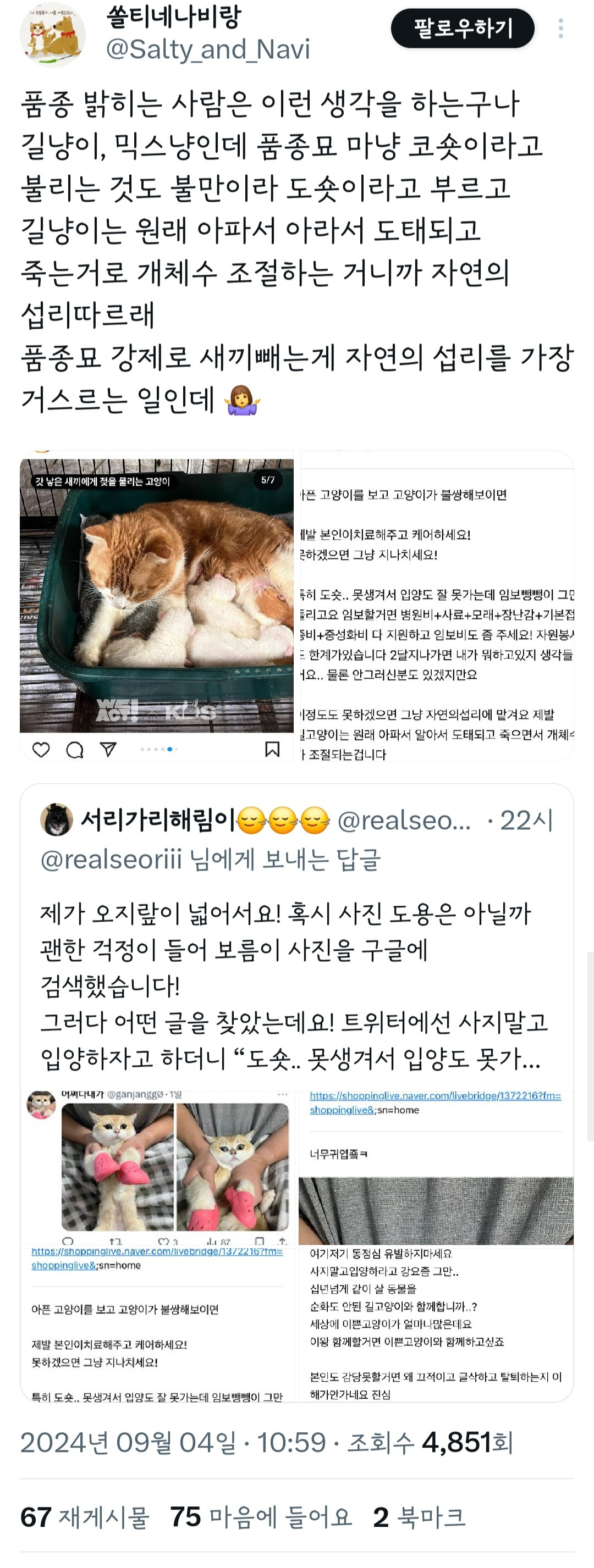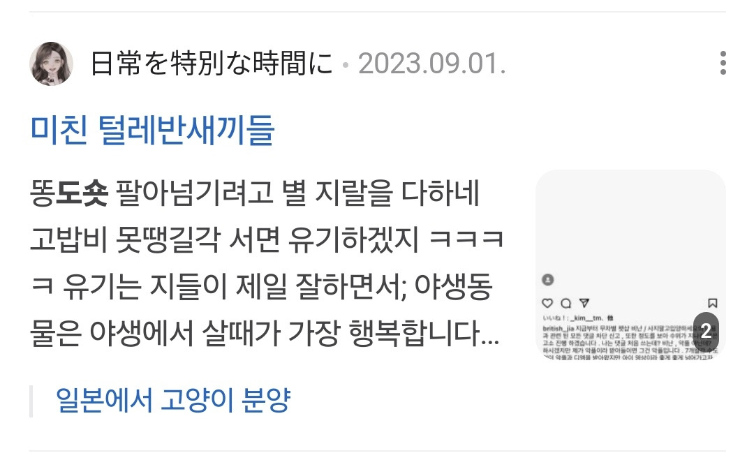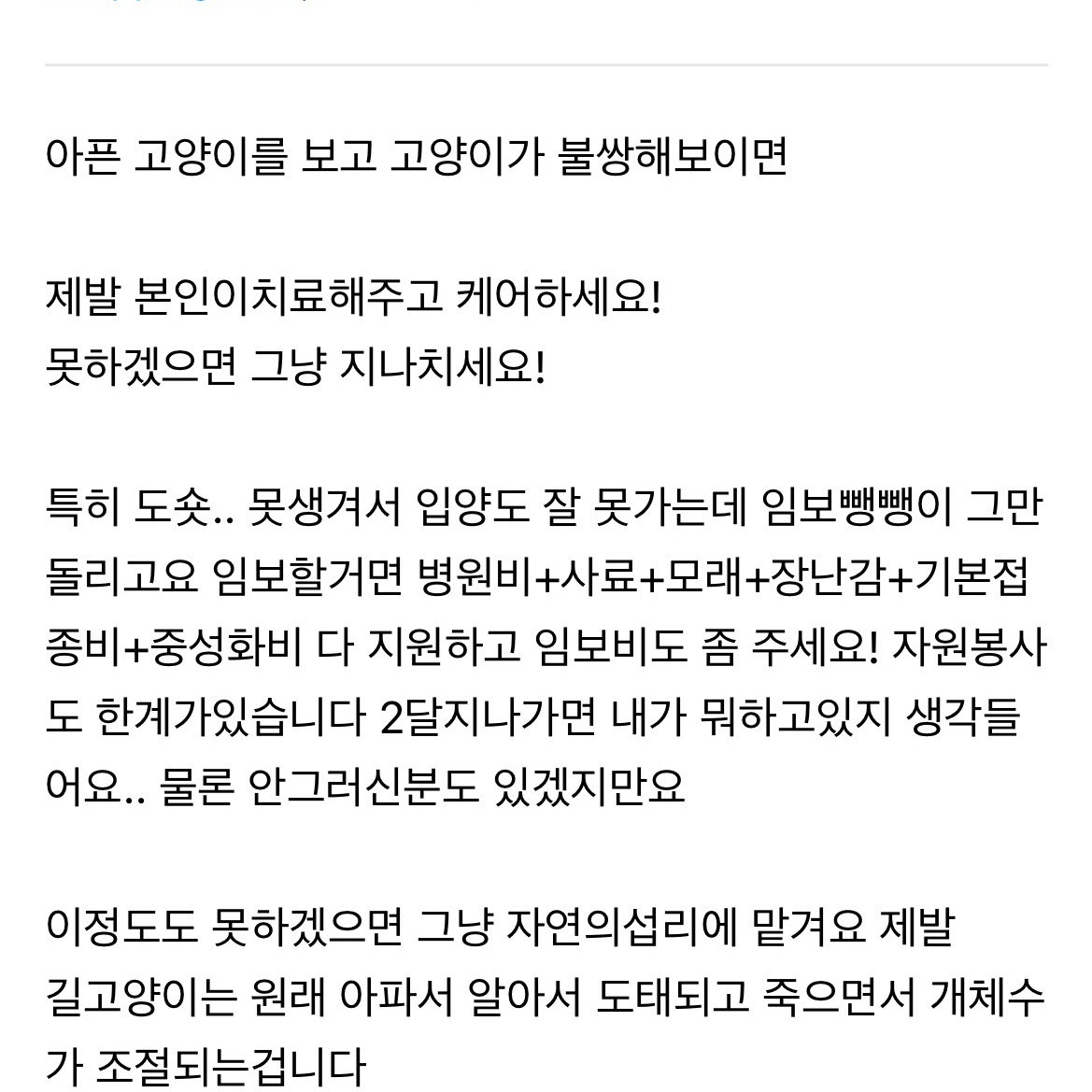 작성자bitter melon 작성시간 24.09.05 ㅋㅋ 그래봤자 너랑은 안살고 길냥이랑 같이 살고있는데 제발 동물한테 열등감좀 버려