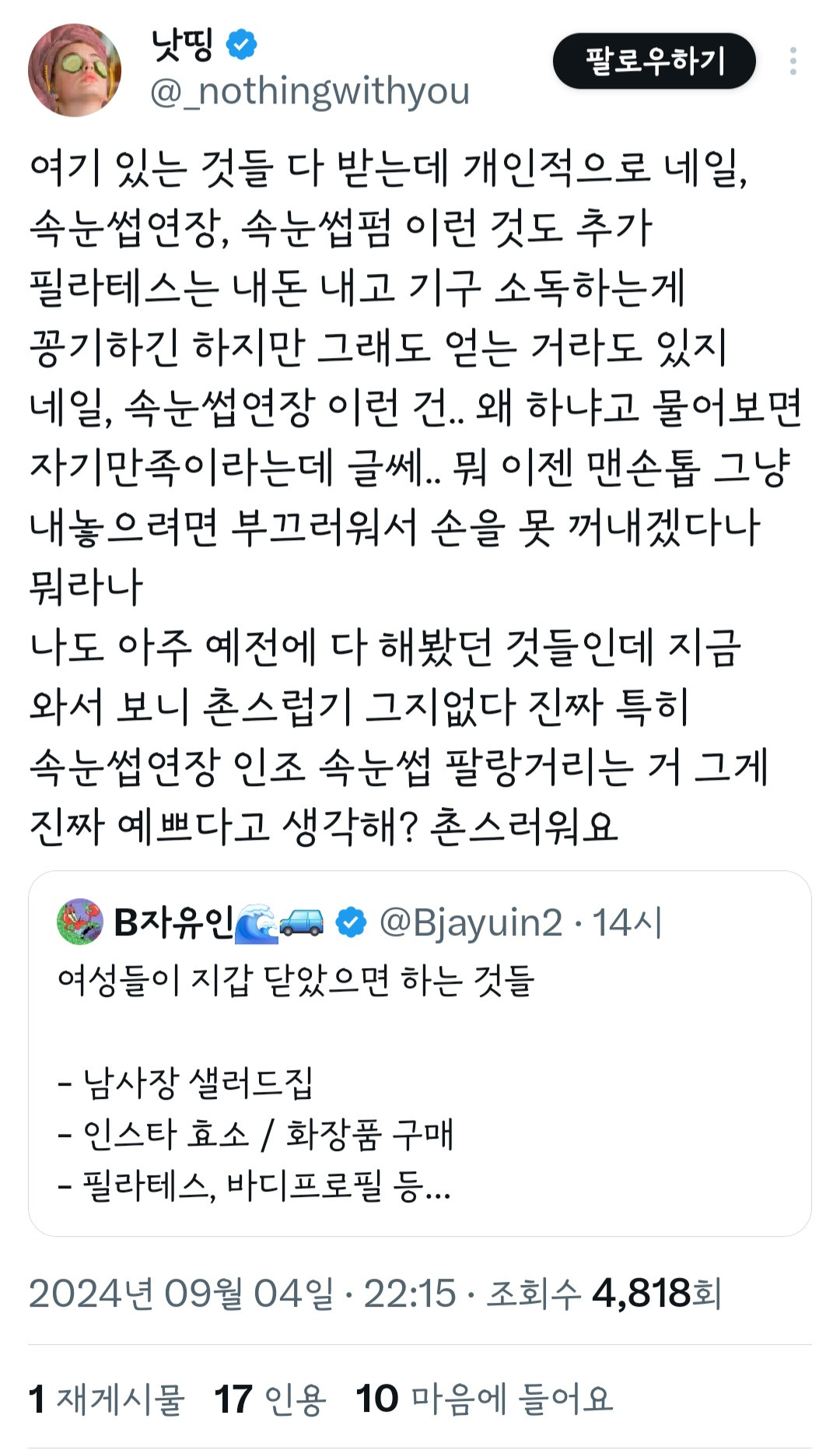작성자따다다닷 작성시간 24.09.06 네일아트...
